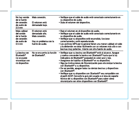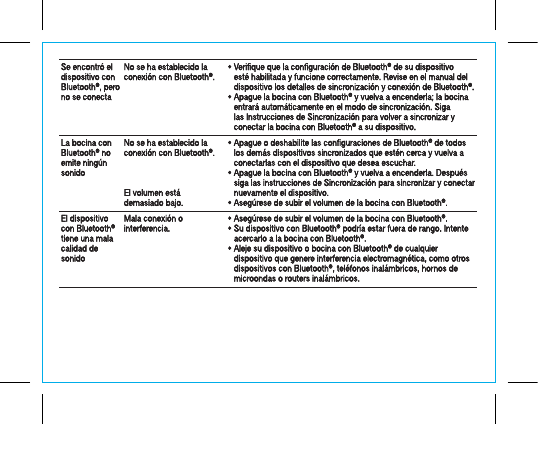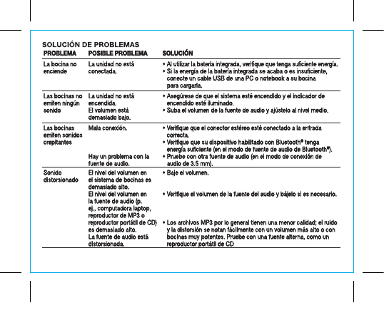 interferencia. • Asegúrese de subir el volumen de la bocina con Bluetooth