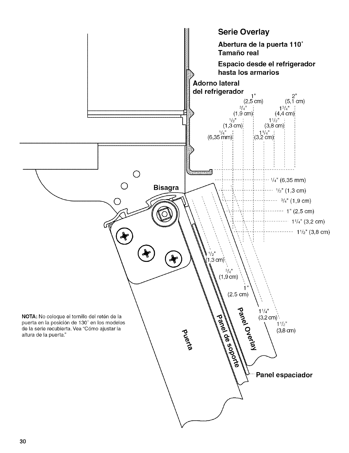 position de 130 ° sur les modeles de la serie Overlay. Voir