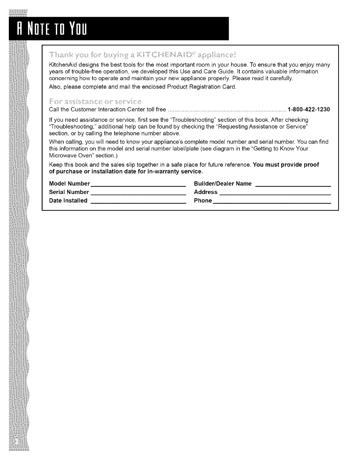 When calling, you will need to know your appliance's complete model number and serial number. You can find