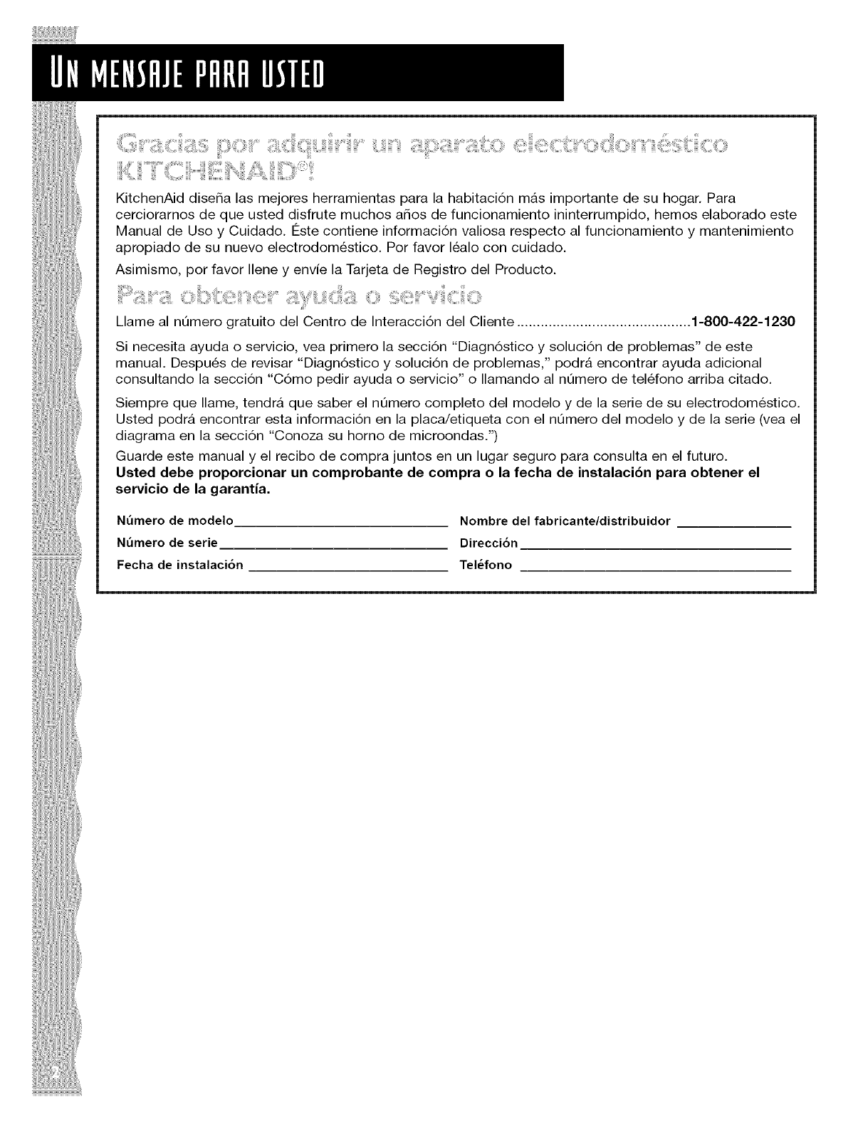 en su caso, pot favor contacte a su distribuidor KitchenAid autorizado,