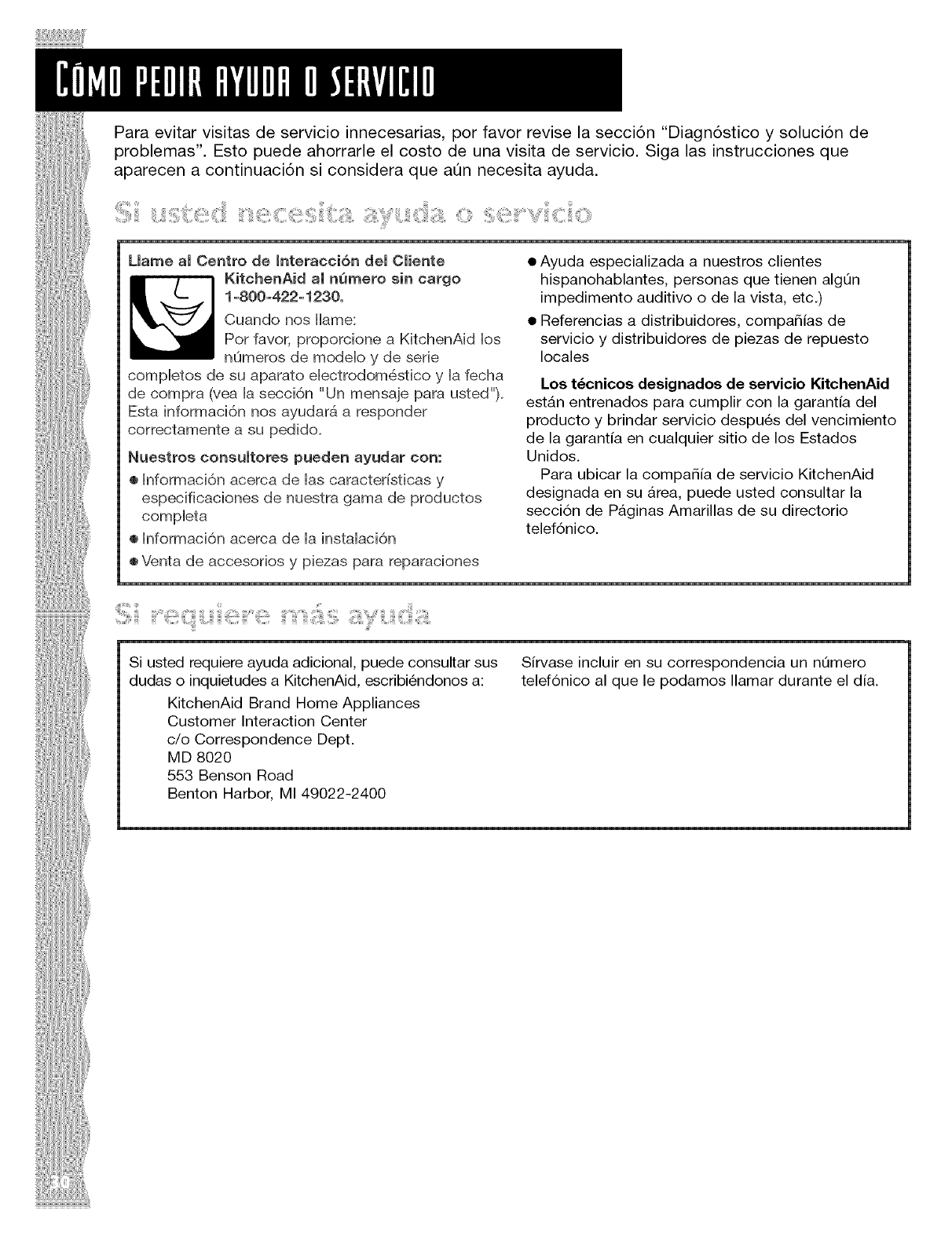 "C6mo pedir ayuda o servicio" o Ilamando a nuestro Centro de Interacci6n del Cliente al 1-800-422-1230
