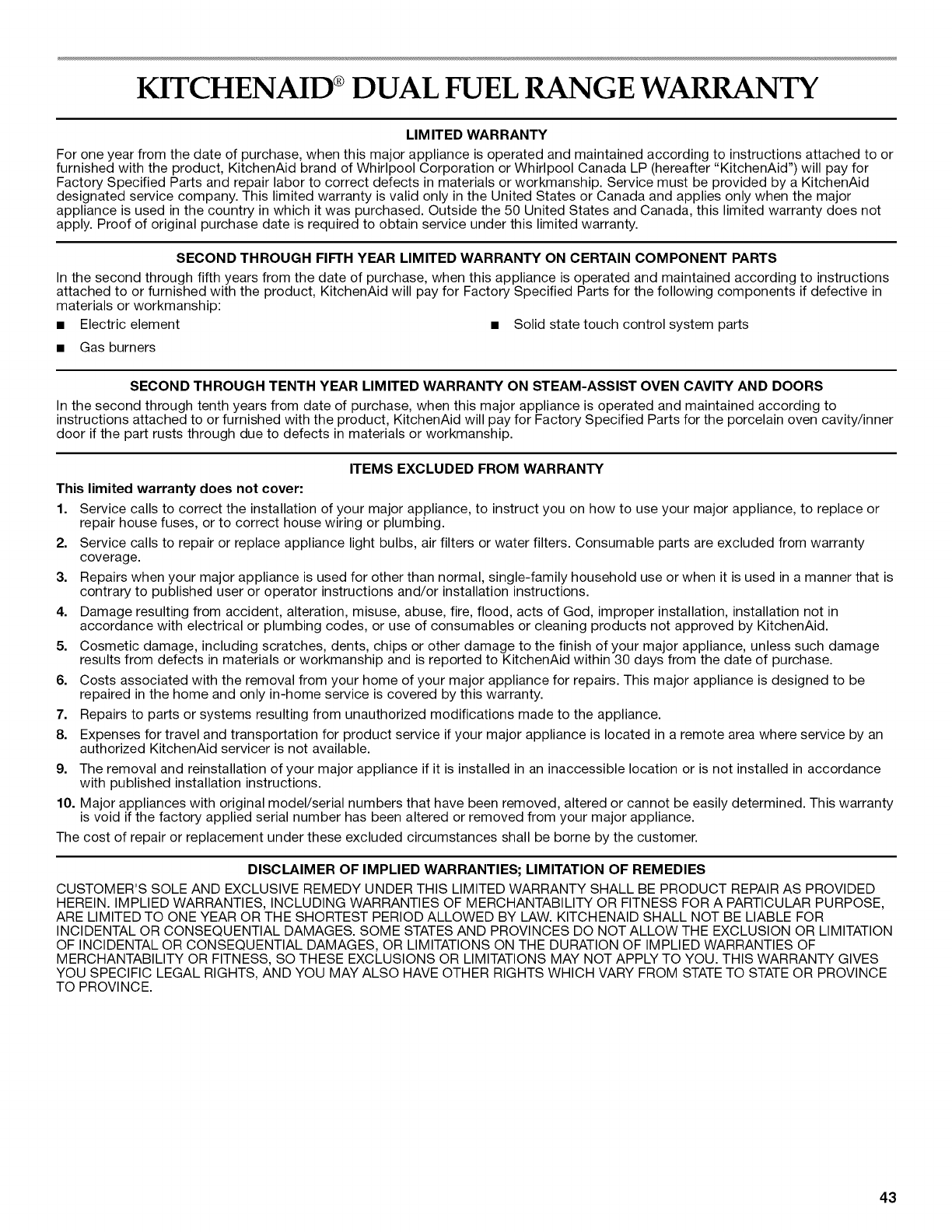 Kitchenaid KDRU707VSS01 1103712L User Manual RANGE Manuals And Guides
