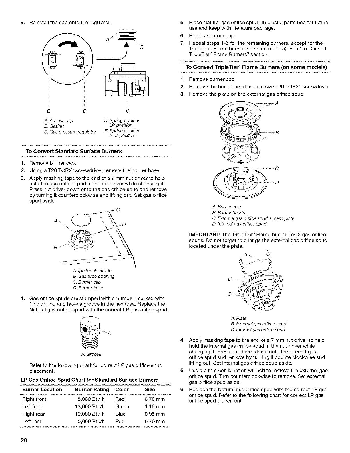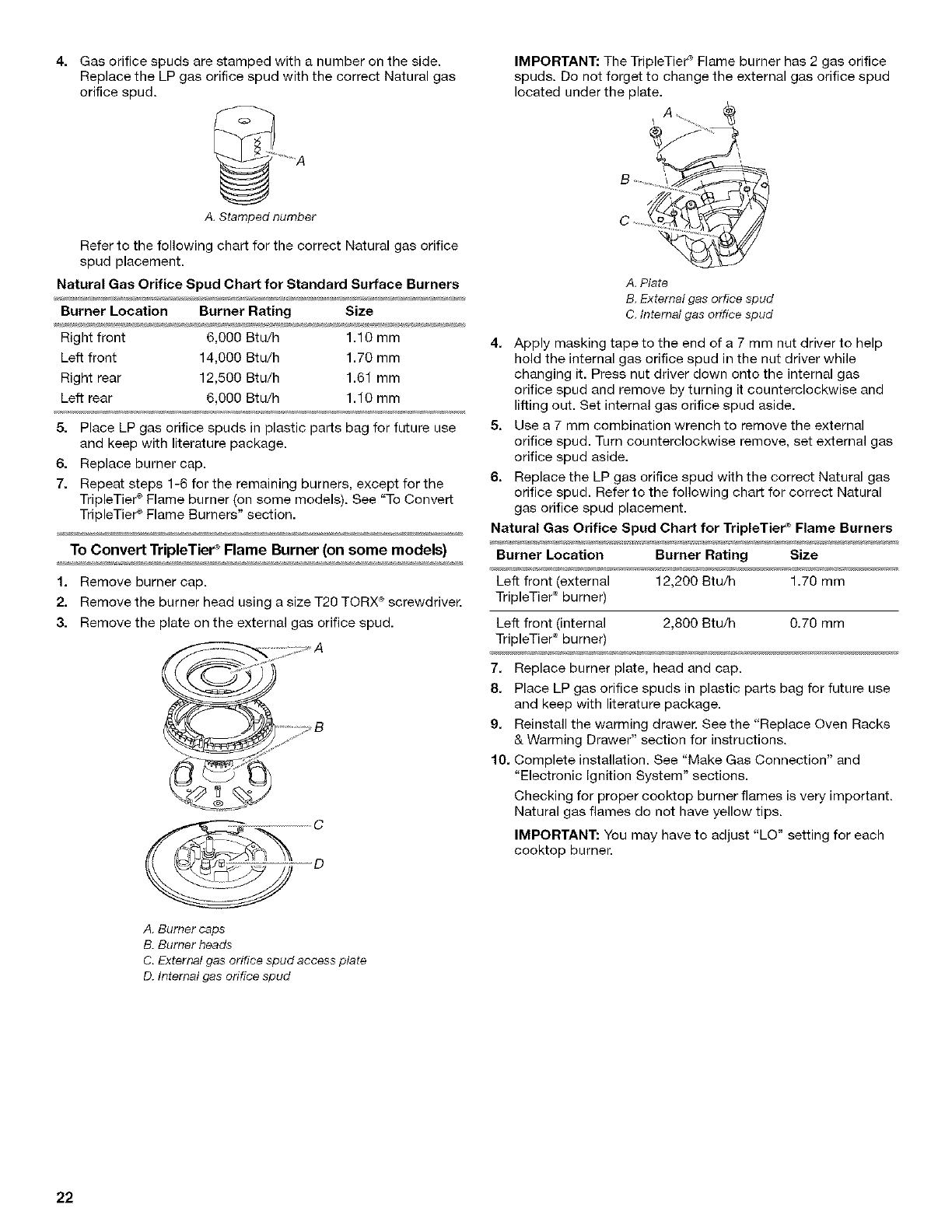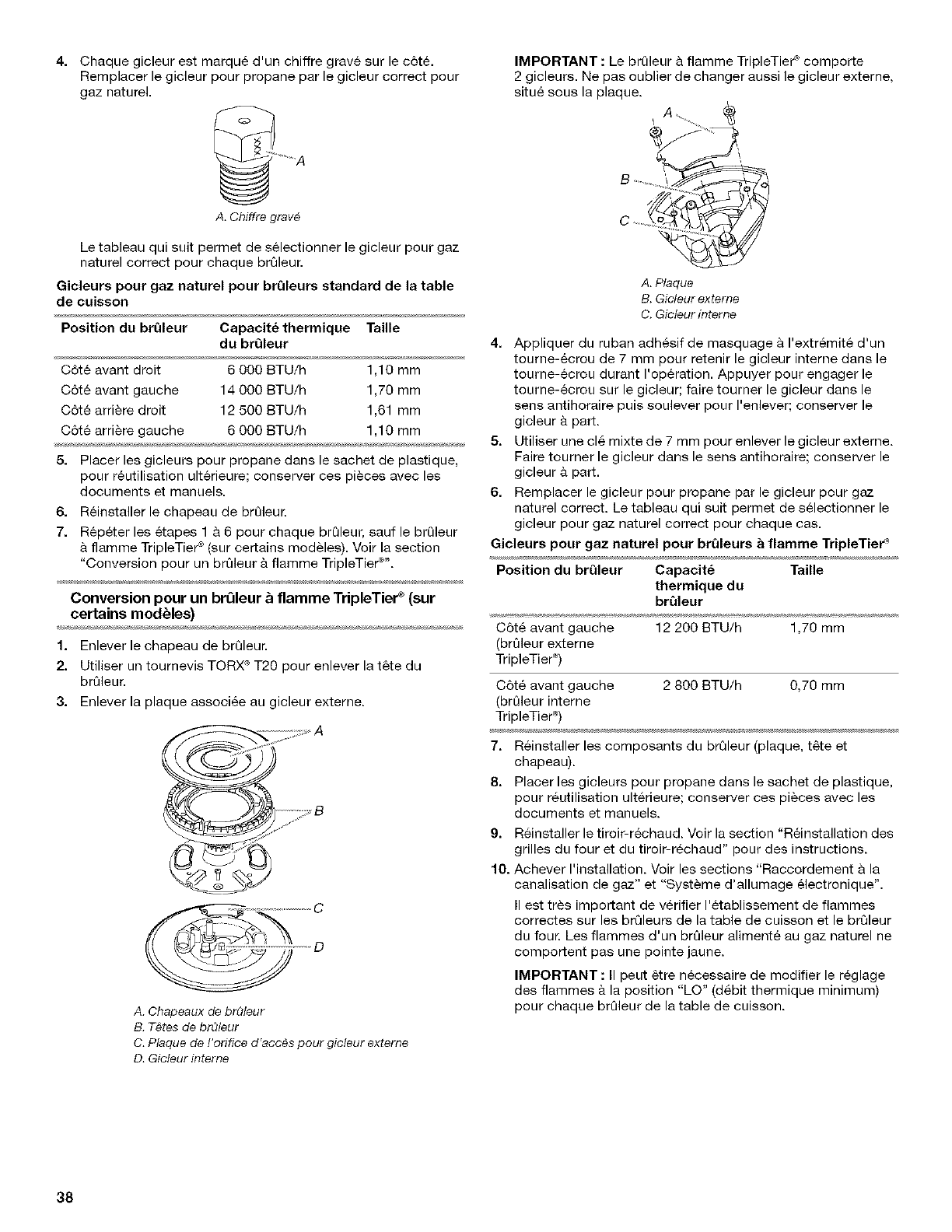 Gicleurs pour gaz naturel pour brOleurs standard de la table
