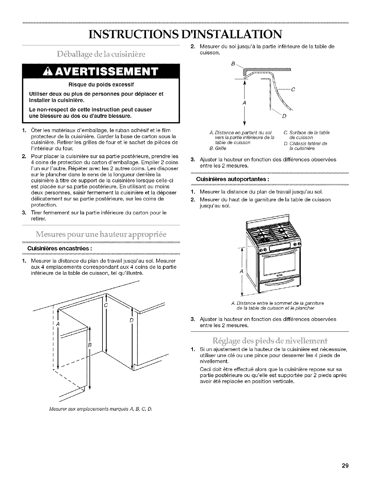 R_glage de I'aplomb de la cuisini@e ......................................... 31
