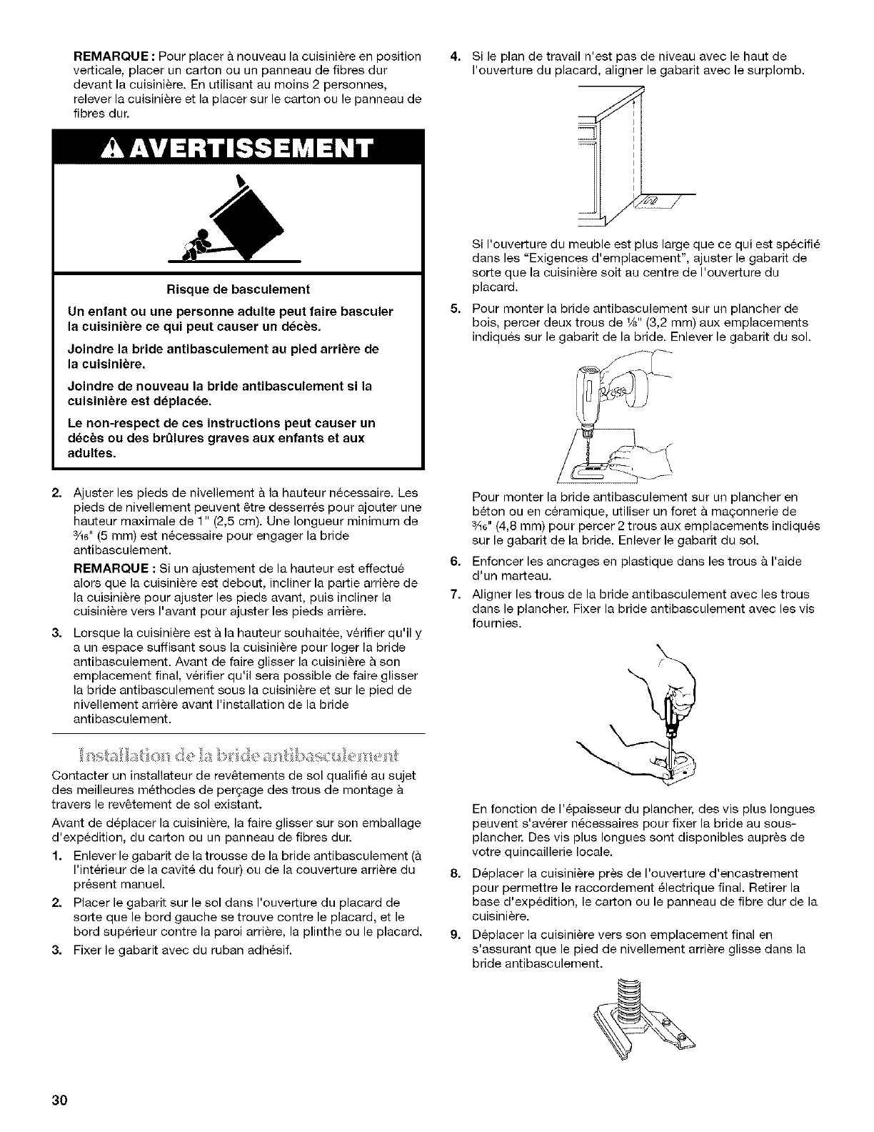 Installation de la bride antibasculement .................................... 30