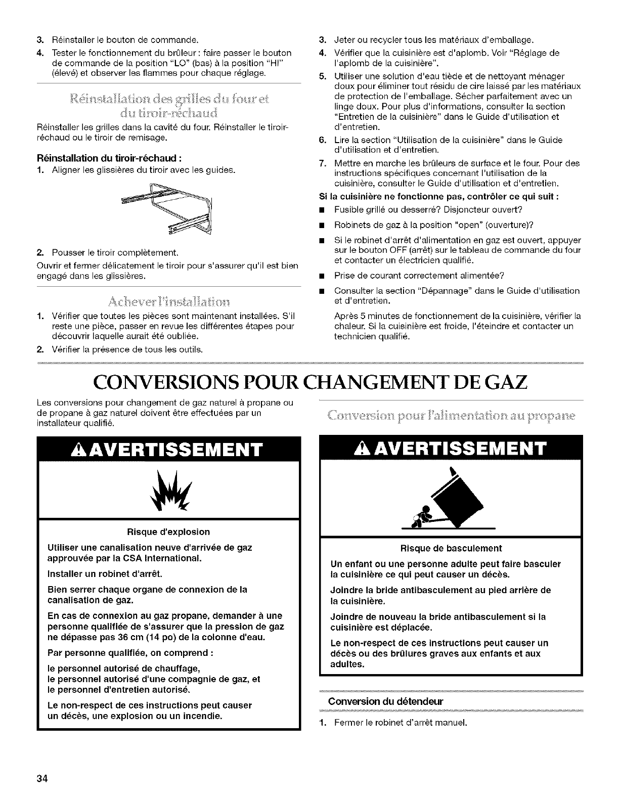 Reinstallation des grilles du four et du tiroir-r6chaud ................ 34