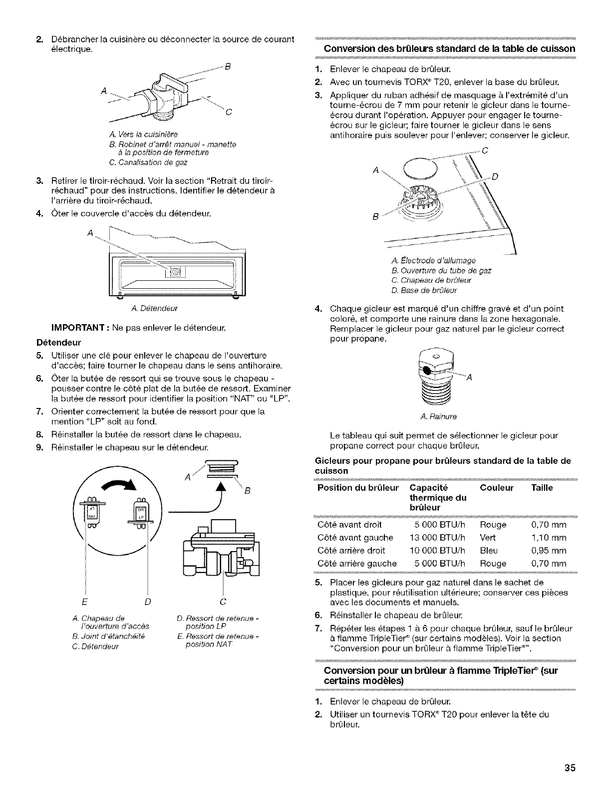 Conversion des br_leurs standard de la table de cuisson