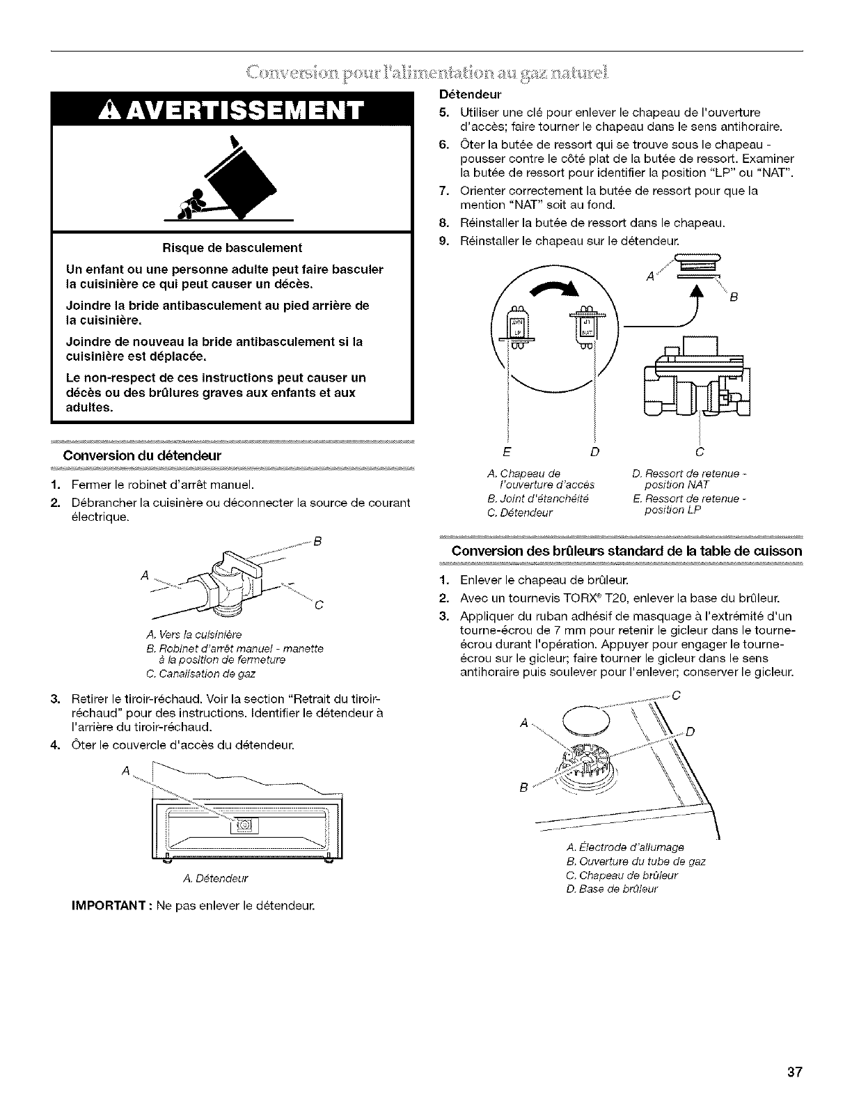 Conversion pour I'alimentation au gaz naturel .......................... 37