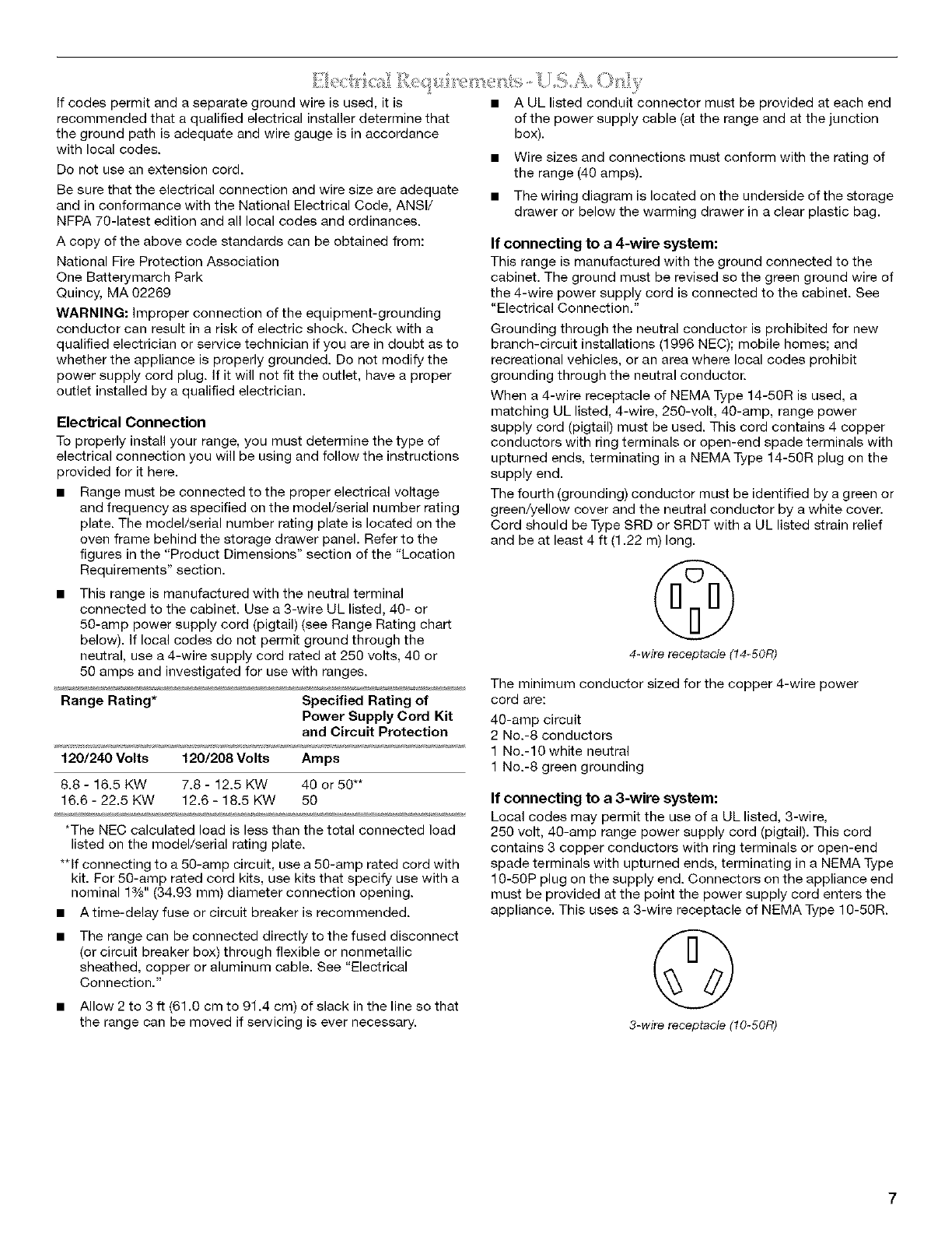 Electrical Requirements -U.S.A. Only ......................................... 7