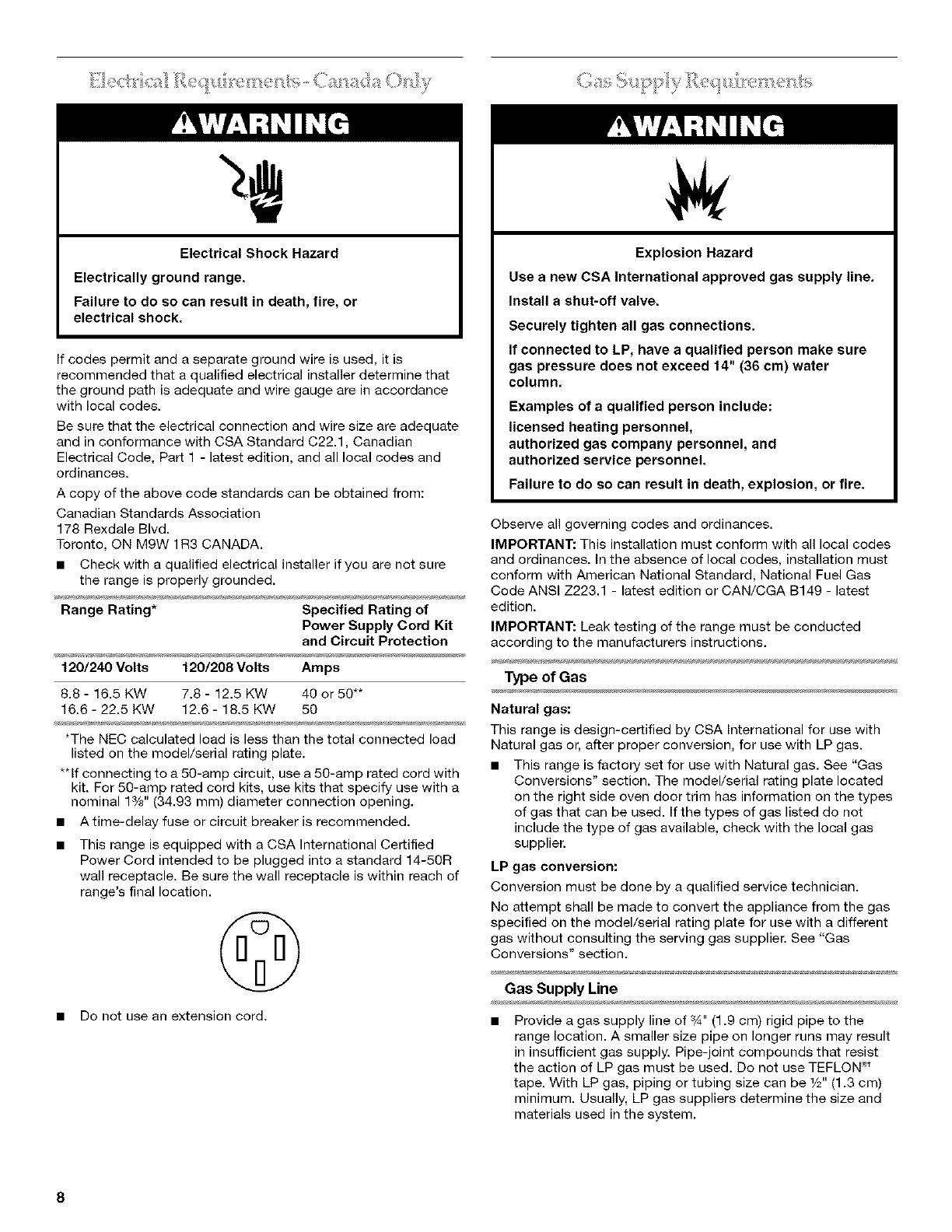 Electrical Requirements - Canada Only ....................................... 8