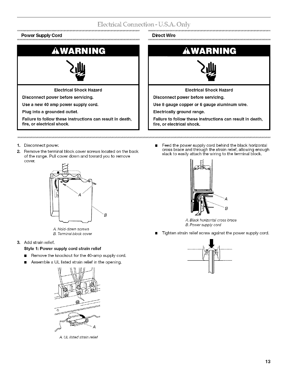 Electrical Connection - U.S.A. Only ........................................... 13