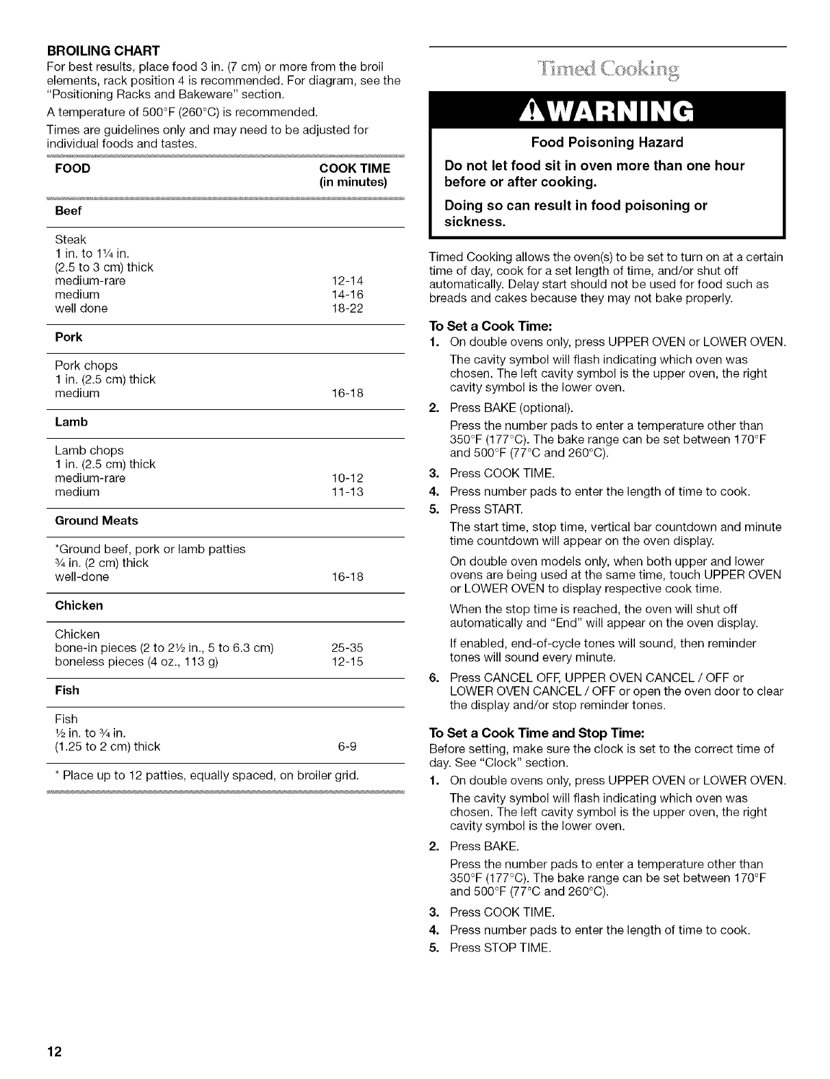 Timed Cooking ........................................................................... 12