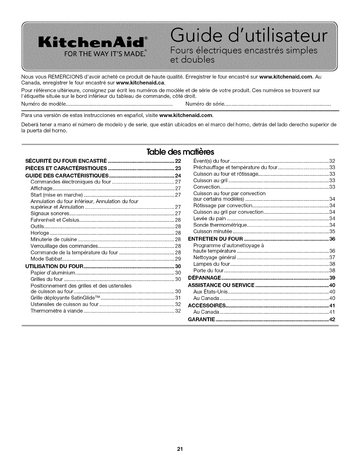 THANK YOU for purchasing this high-quality product. Register your built-in oven at www.kitchenaid.com. In Canada, register your