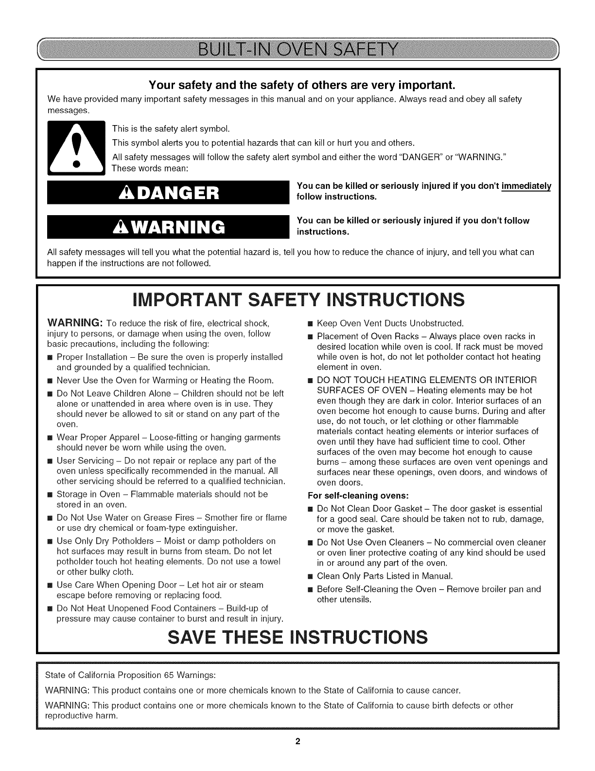BUILT-IN OVEN SAFETY ................................................................ 2