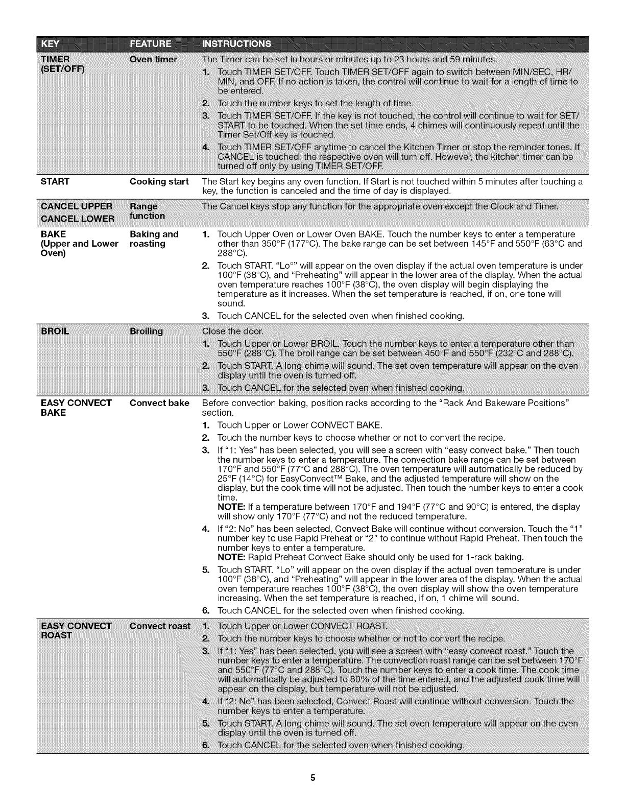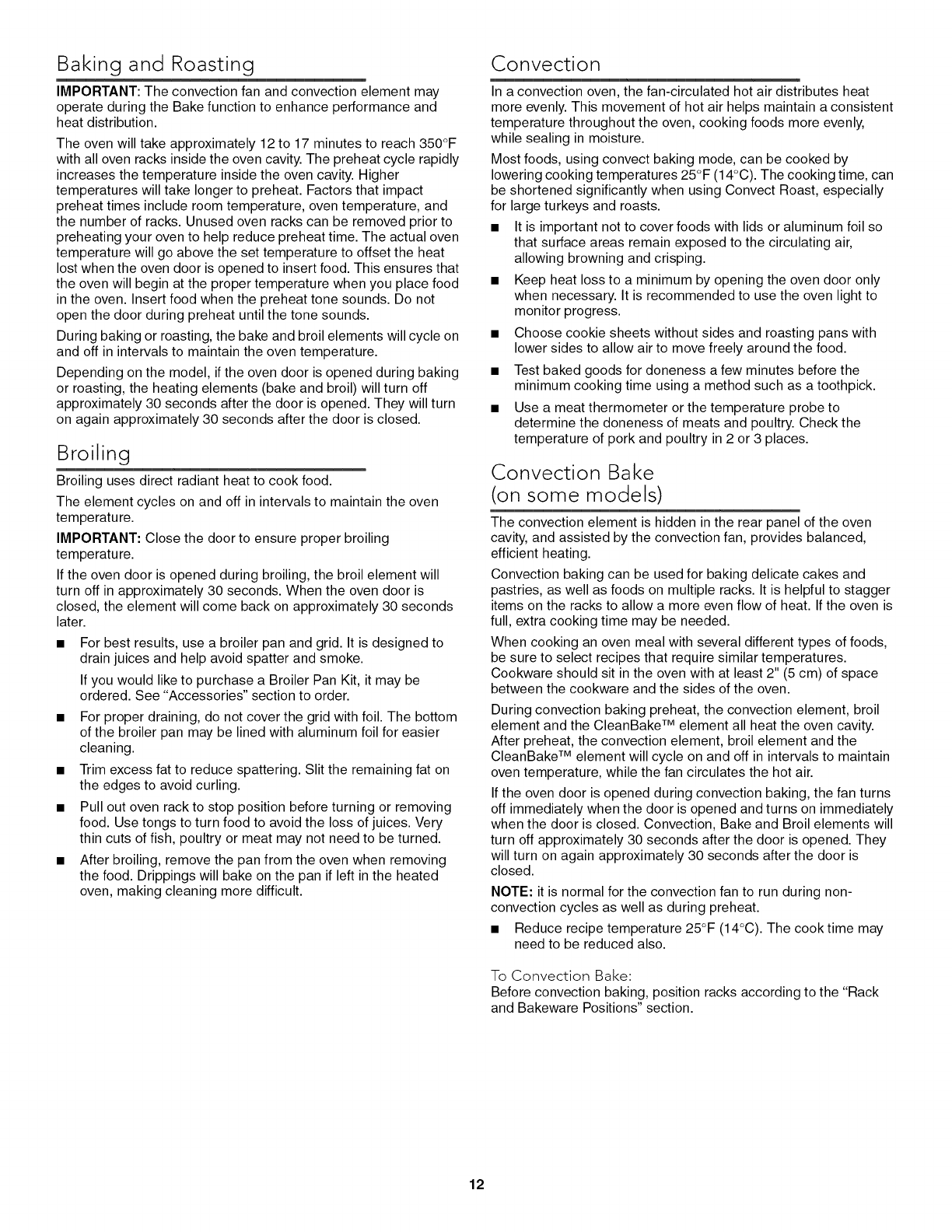Convection Bake ................................................................... 12