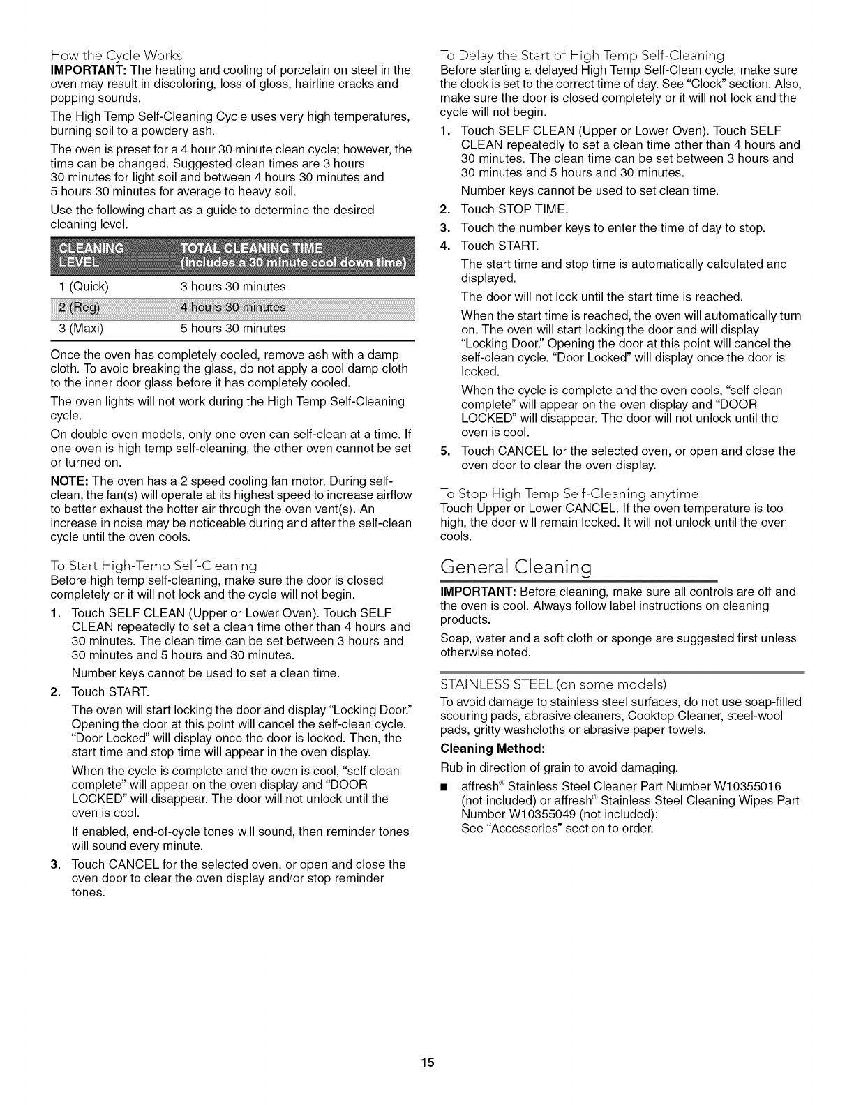 High Temp Self-Cleaning Cycle ............................................ 14
