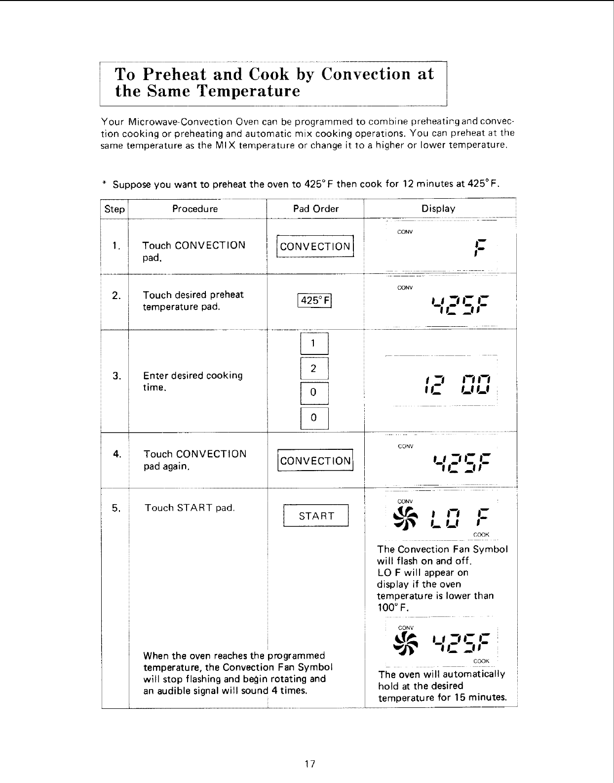 To Cook by Convection ..................................... 16