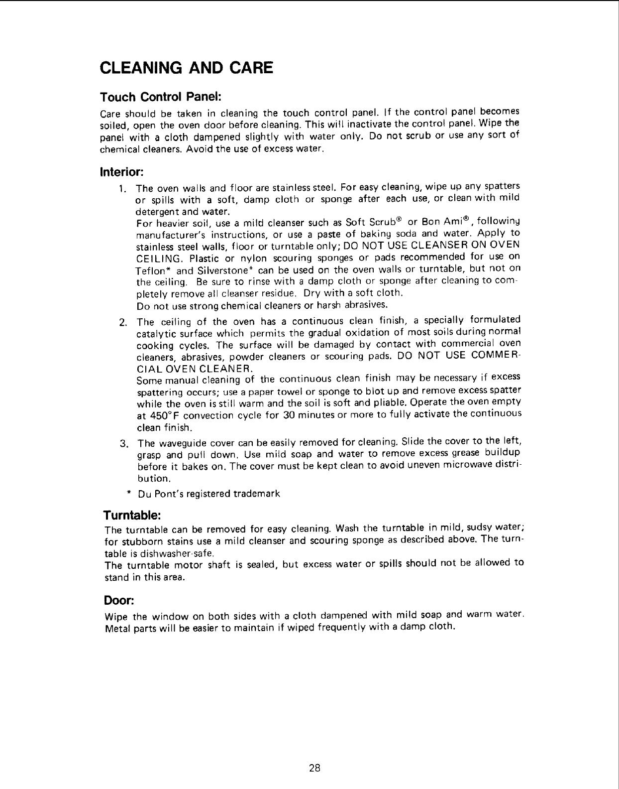 (b) Do not place any object between the oven front face and the door or allow soil or