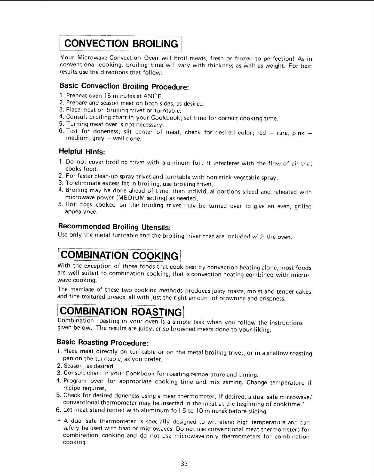 Convection Broiling ......................................... 33