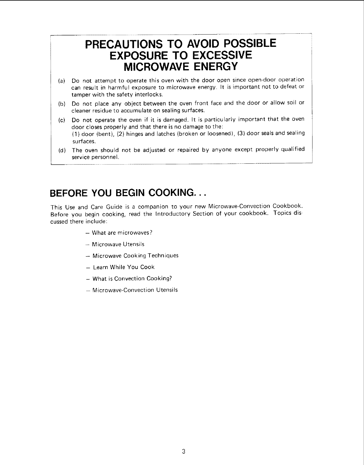 Precautions to Avoid Possible Exposure to Excessive Microwave Energy ........ 3