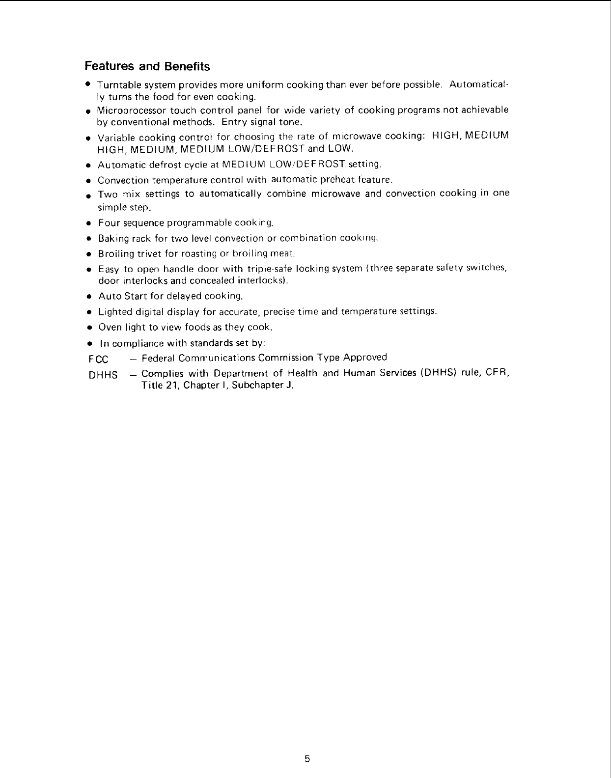 MICROWAVE-CONVECTION OVEN FEATURES