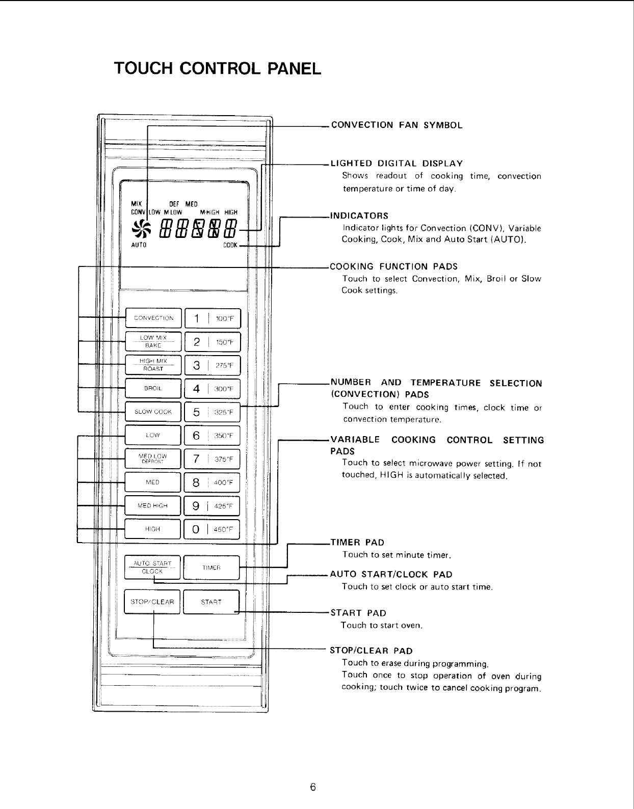 8. Touch Control Panel. See page 6 for details.