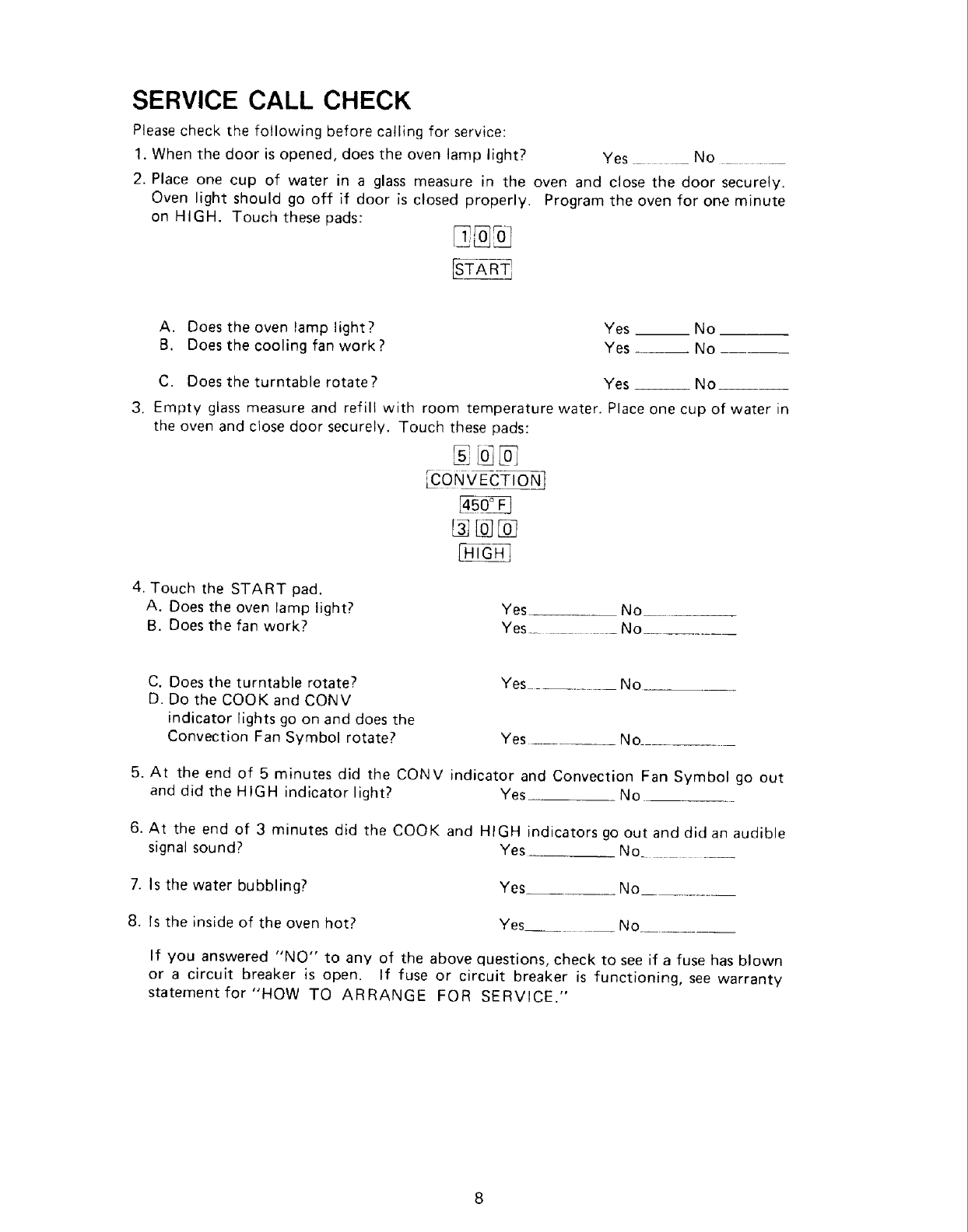 Service Call Check ............................................ 8