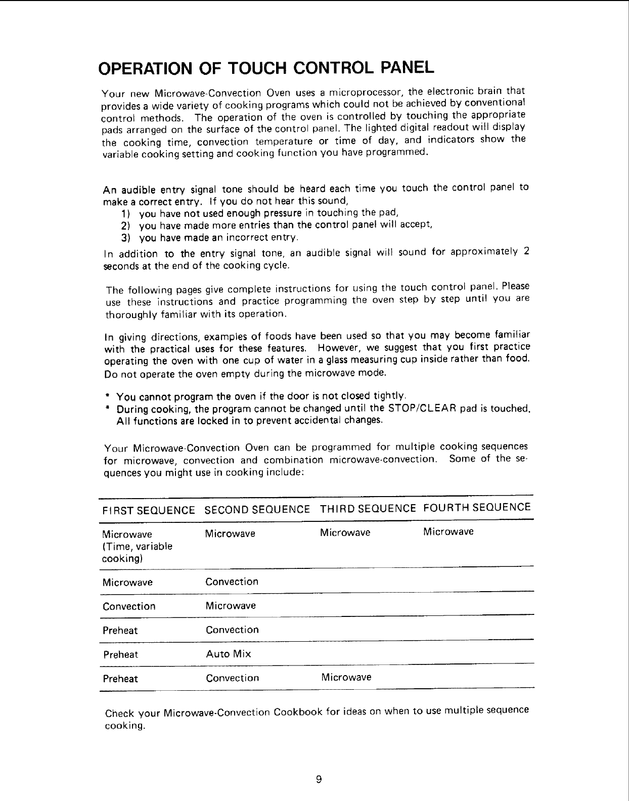 •Microprocessor touch control panel for wide variety of cooking programs not achievable