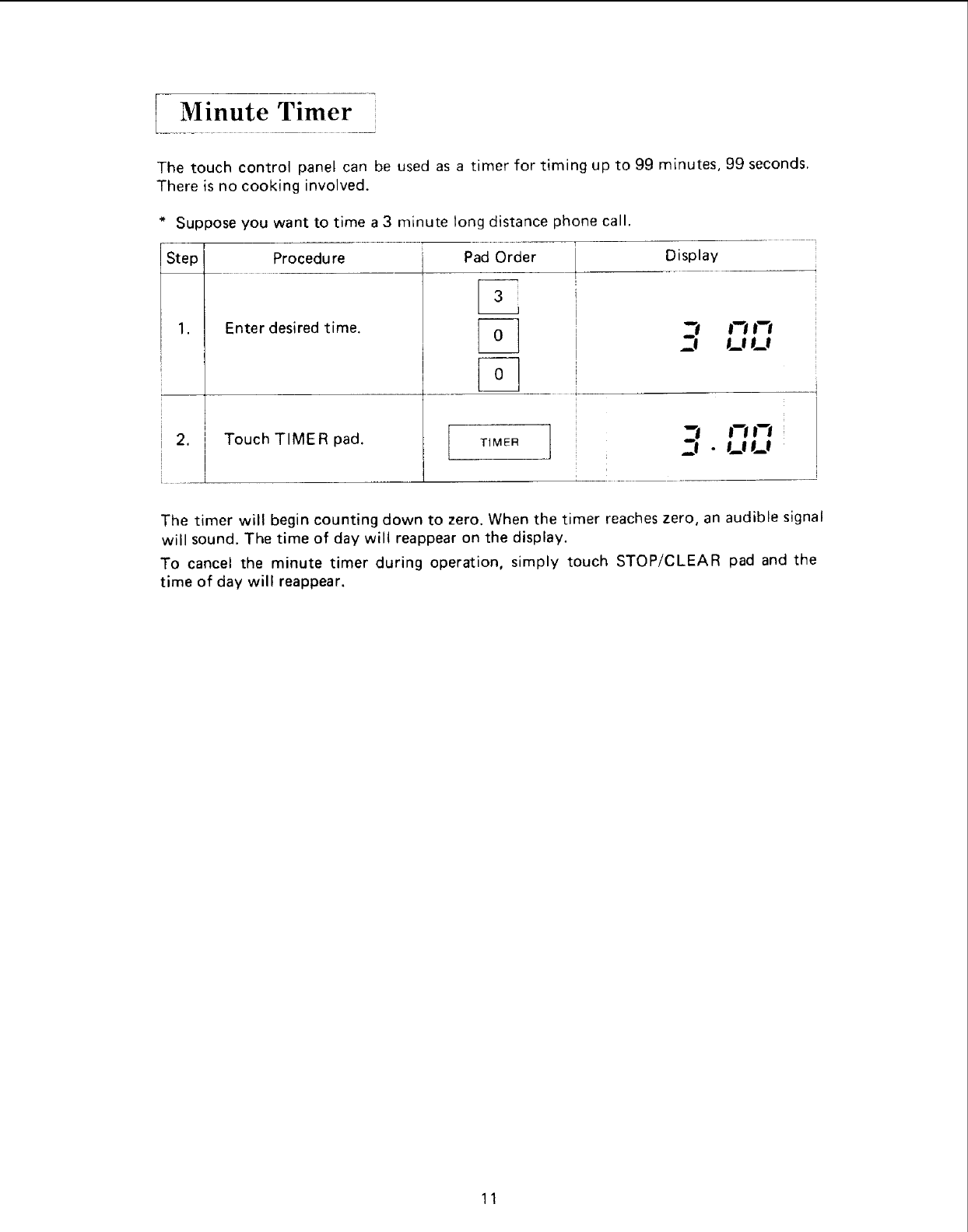 Minute Timer ............................................. 11
