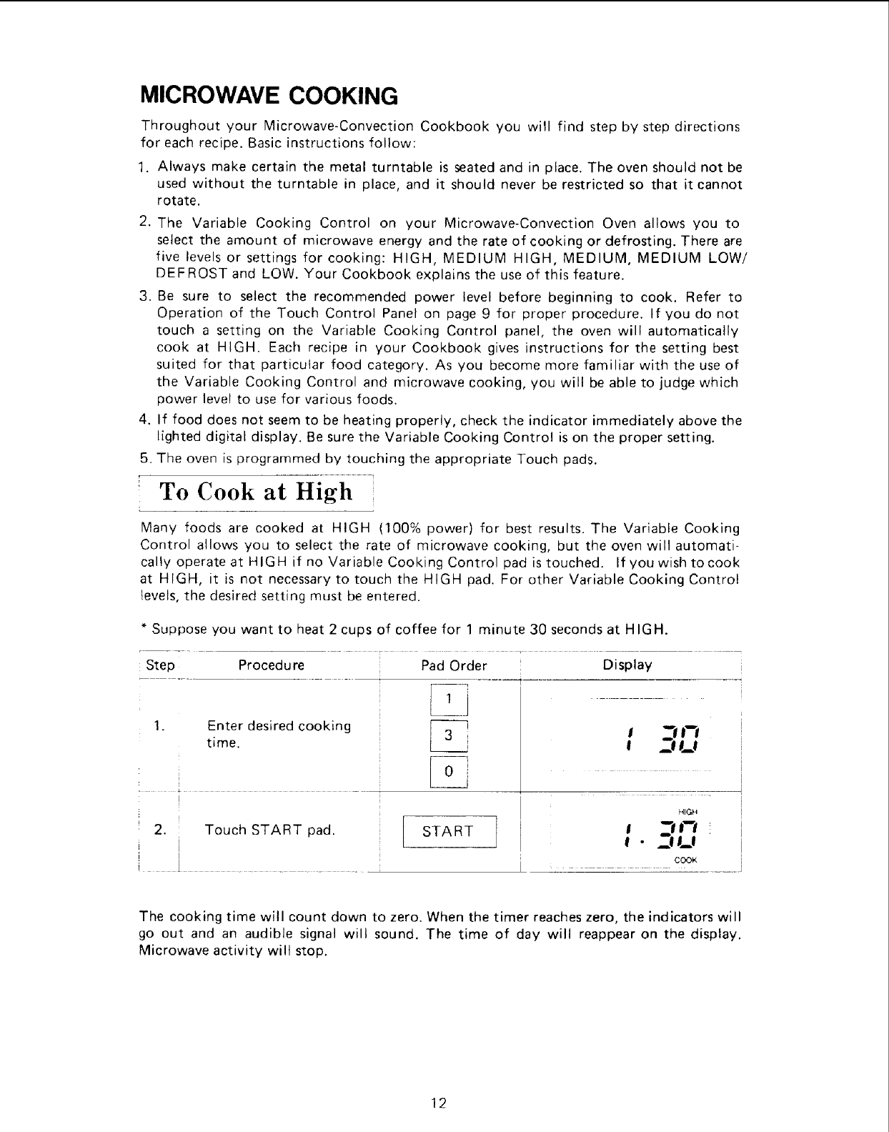 Microwave Cooking ......................................... 12