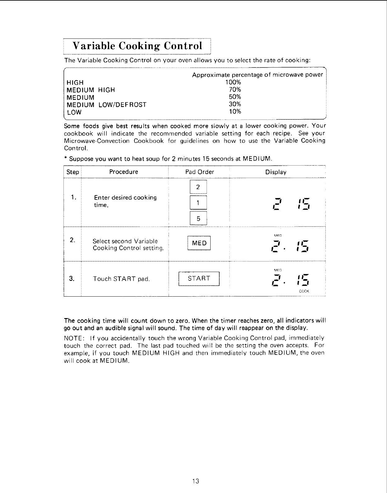 Variable Cooking Control ................................... 13