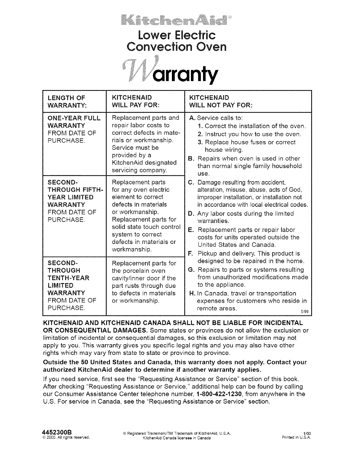 4452300B ® Registered Trademark/TM Trademark of KitchenAid, USA. 1/00