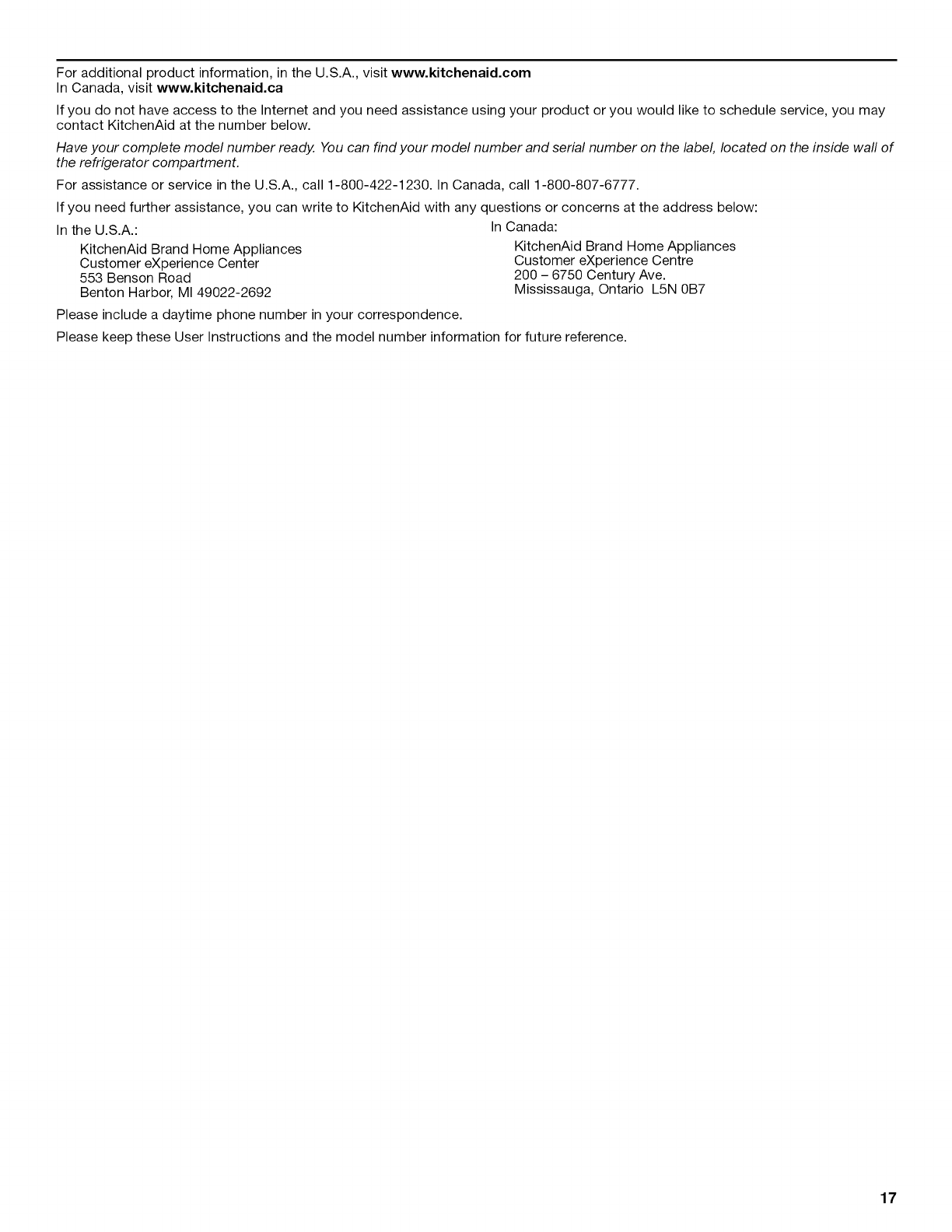 Kitchenaid KFCO22EVBL2 1101475L User Manual REFRIGERATOR Manuals And Guides