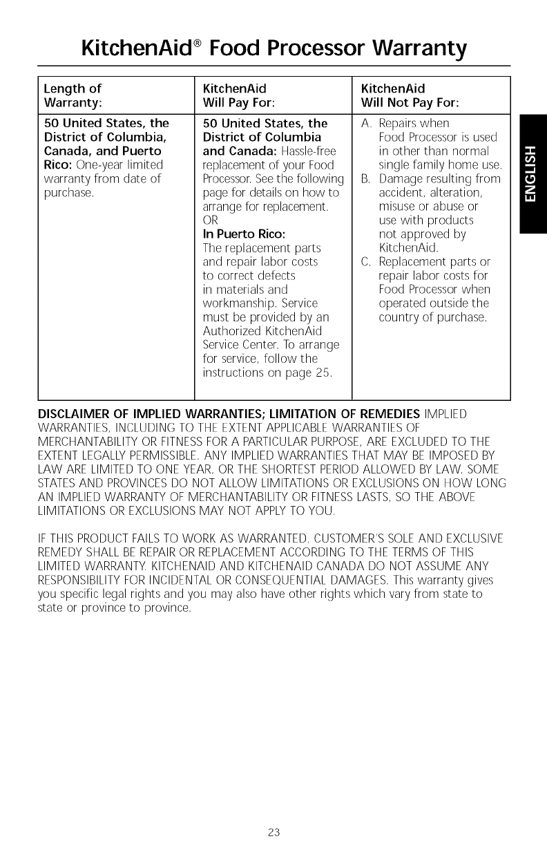 Kitchenaid KFPM773CA0 User Manual ARCHITECT FOOD PROCESSOR Manuals And Guides L0910093