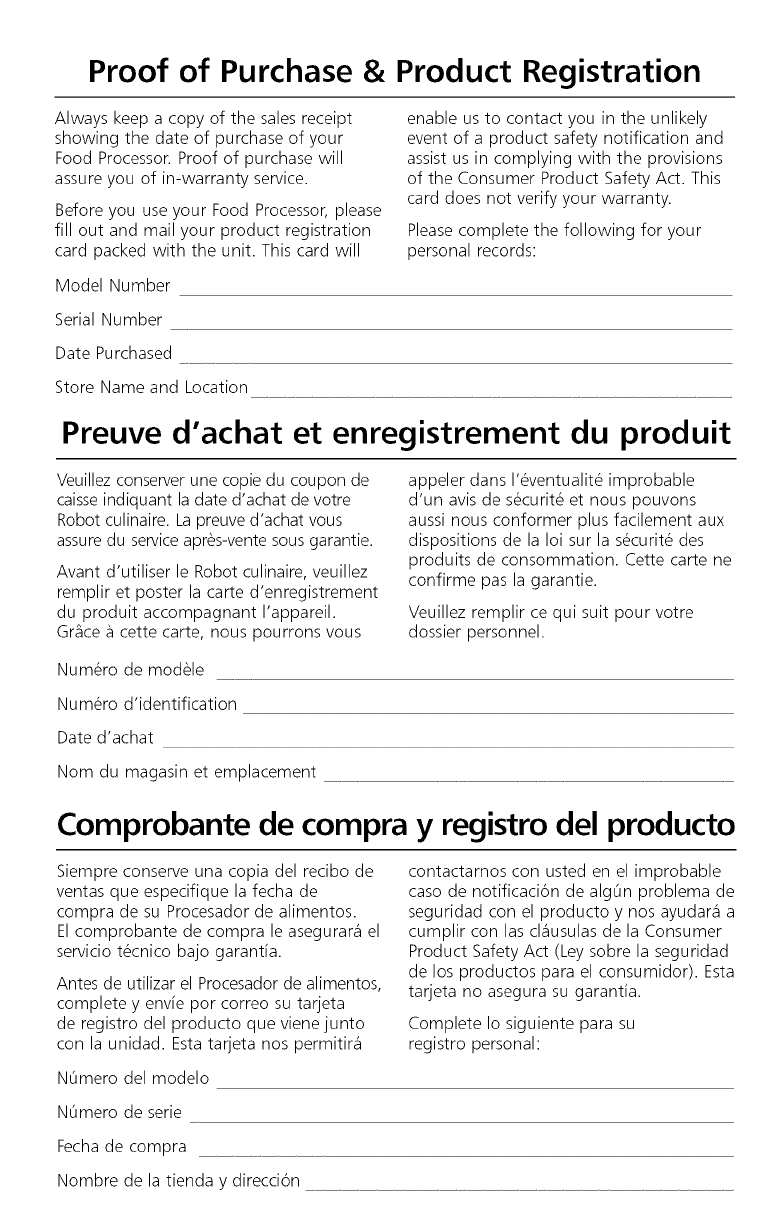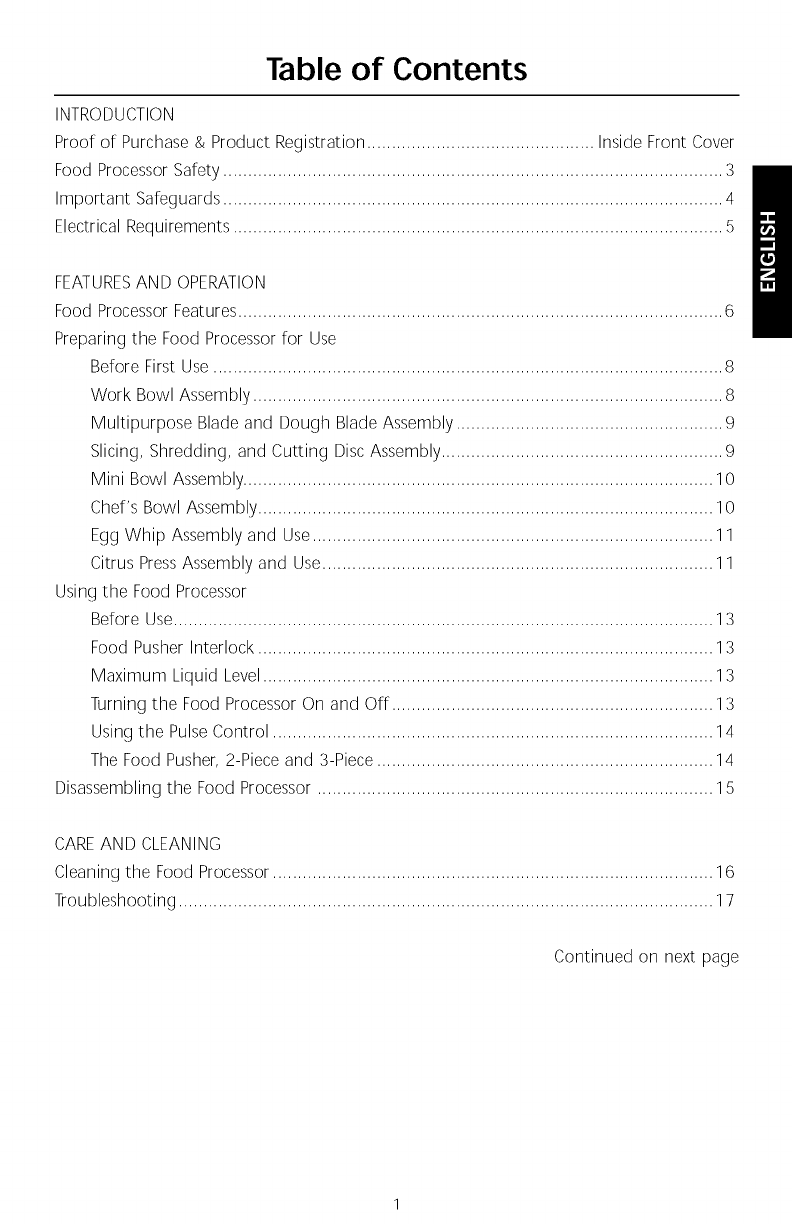 Food Processor Safety ..................................................................................................... 3