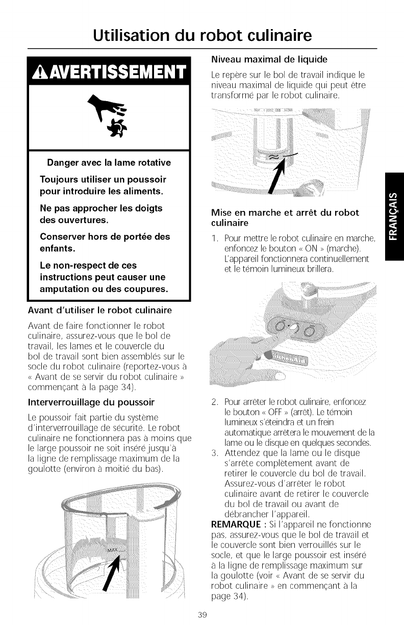 Avant d'utiliser le Robot culinaire, veuillez