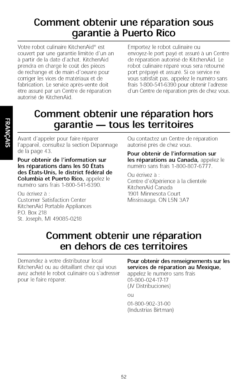 KitchenAid, U.S.A., Emploi sous licence par KitchenAid Canada au Canada. ,'c)2009. Tous droits r6serv6s.