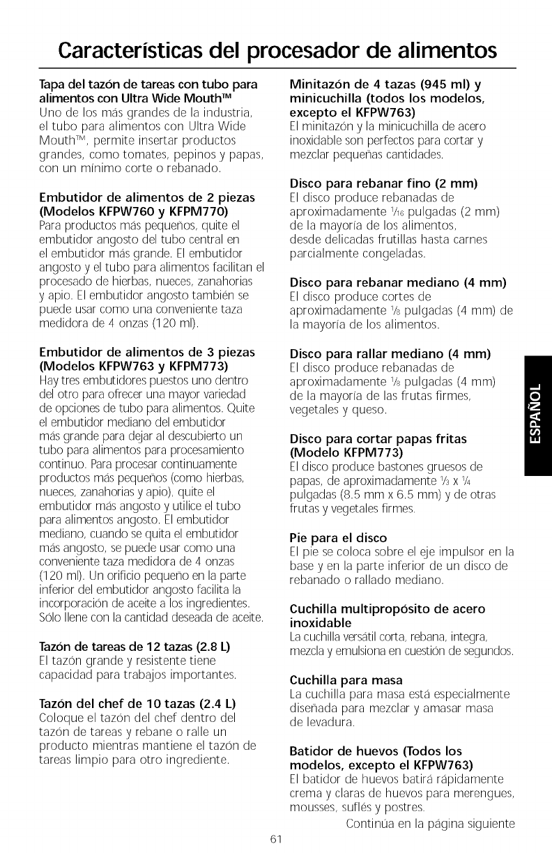 tazas (2.8 L) KFPW760, KFPW763,