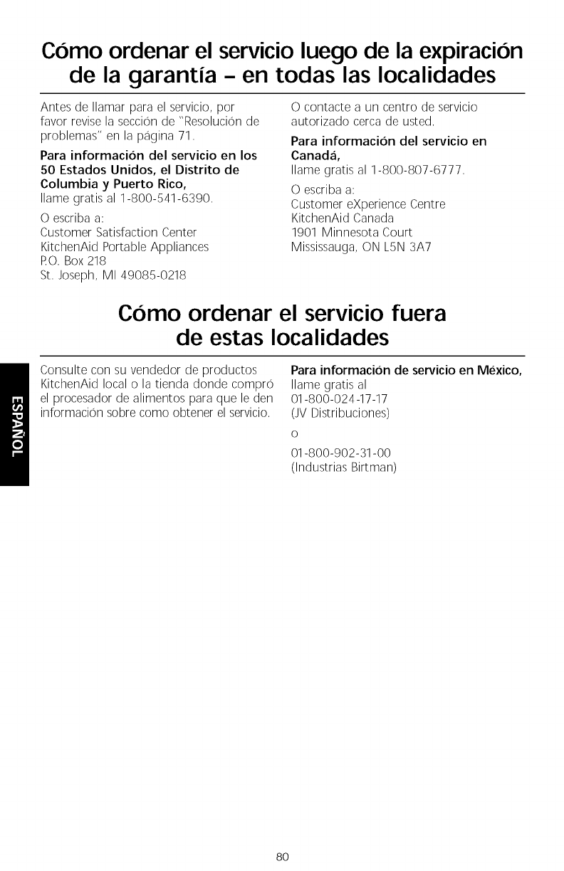 Para informaci6n de servicio en Mexico,