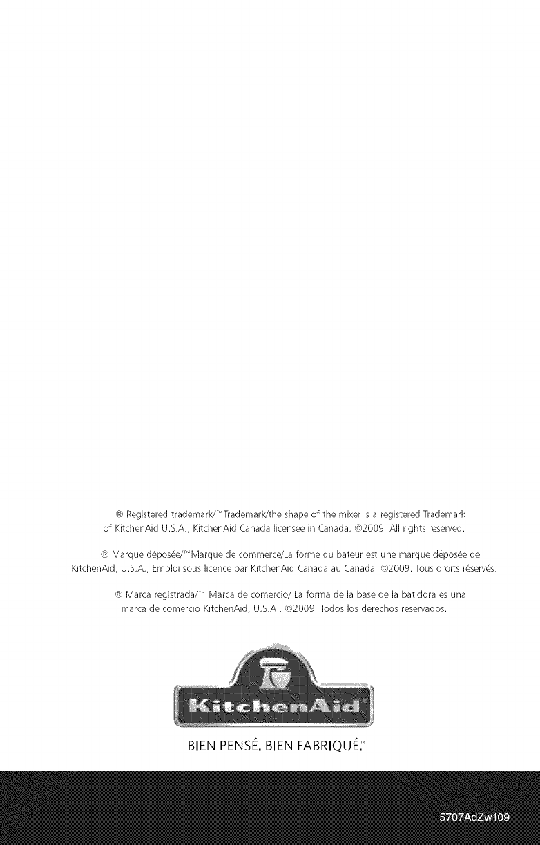 of KitchenAid U.S.A., KitchenAid Canada licensee in Canada. _)2009. All rights reserved.