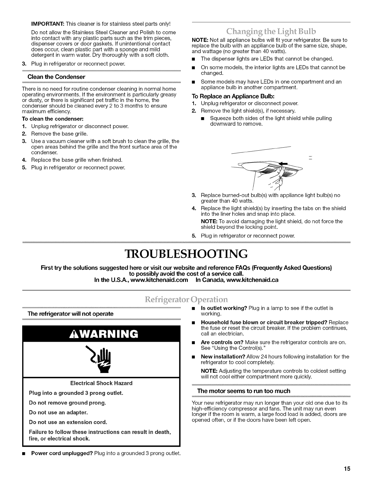 Kitchenaid KFXL25RYMS2 1105509L User Manual REFRIGERATOR Manuals And Guides