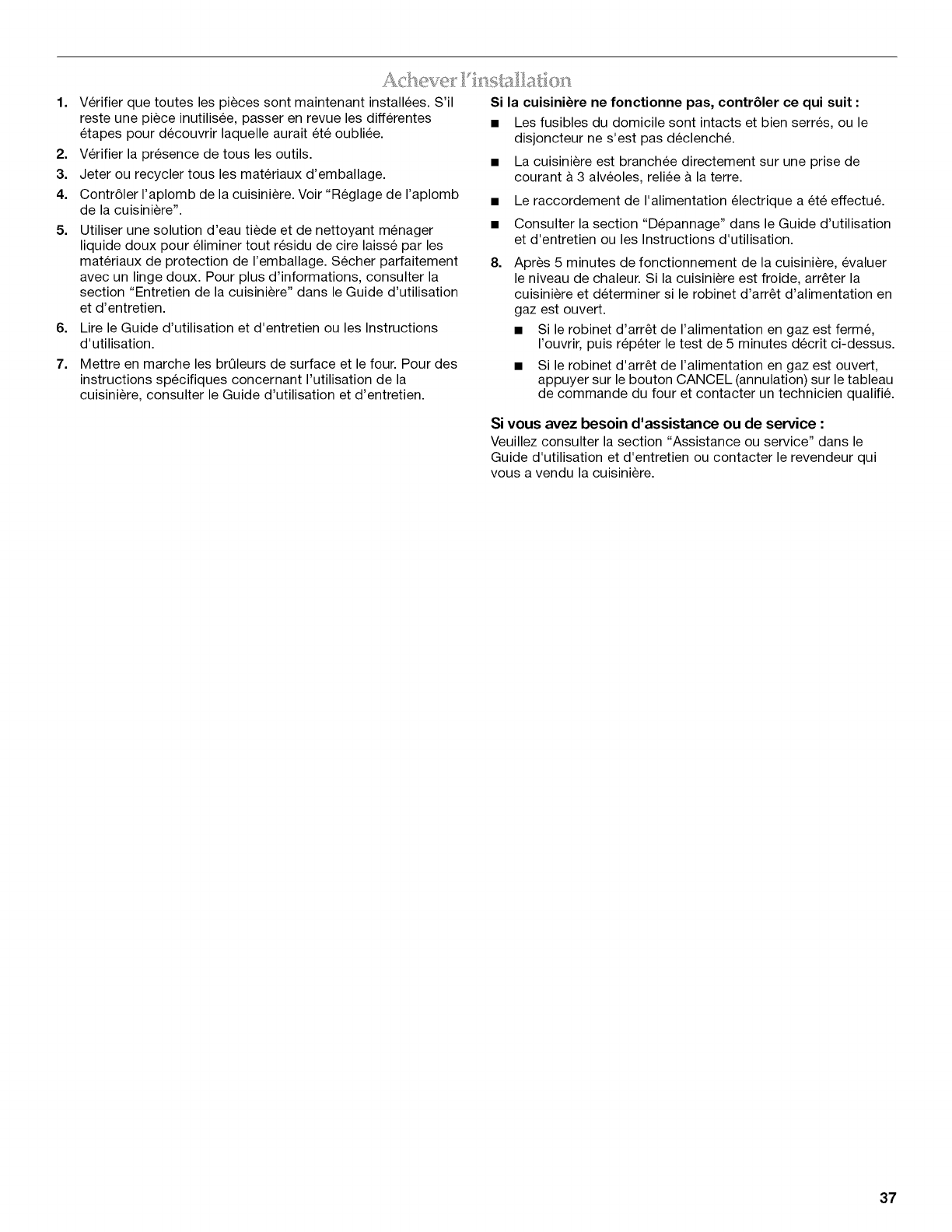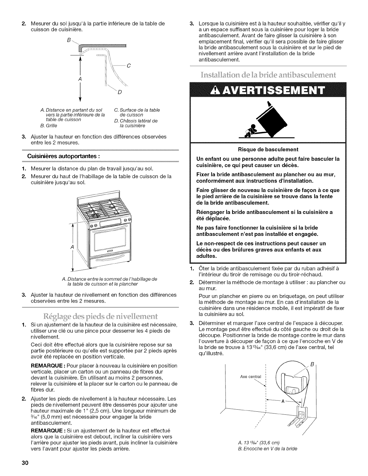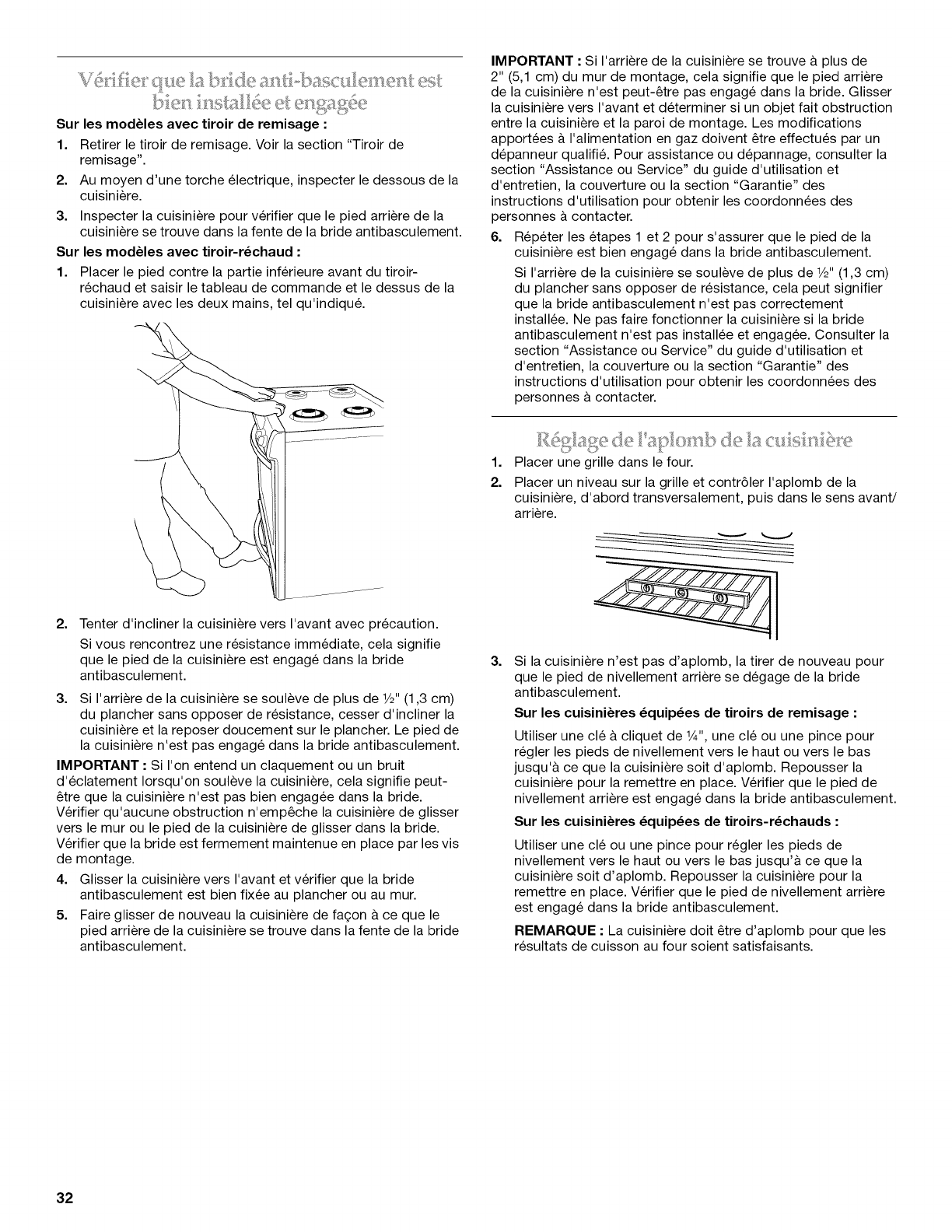 Reglage de I'aplomb de la cuisiniere ......................................... 32