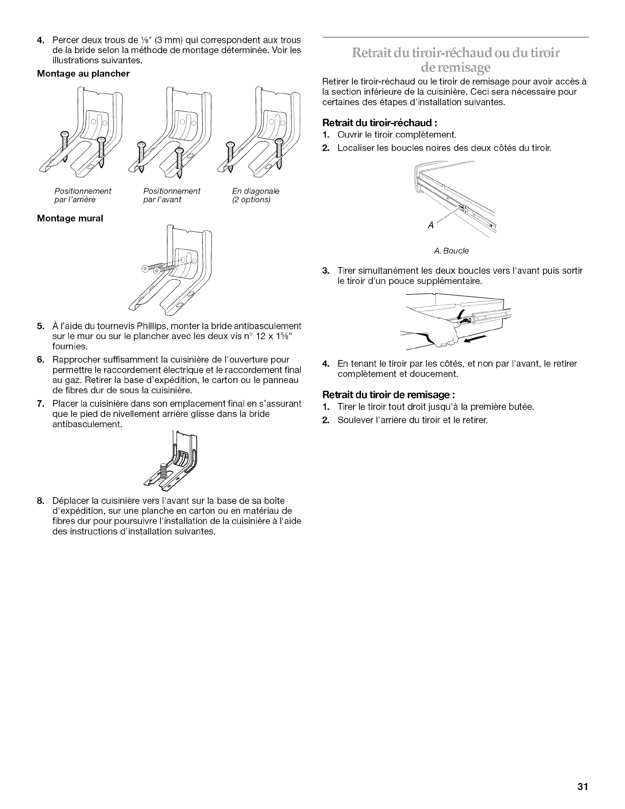 3. Retirer le tiroir-rechaud ou le tiroir de remisage. Voir la section