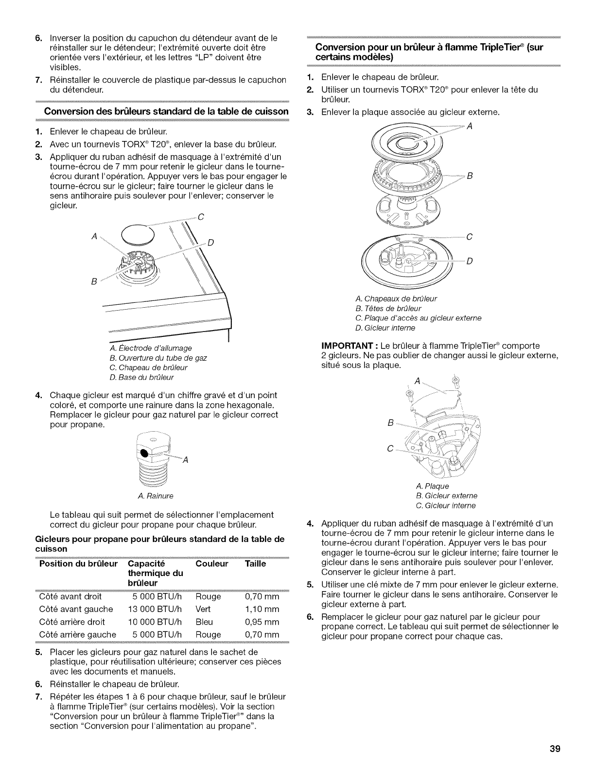 section "Conversion pour un brQleur & flamme TripleTier ®''