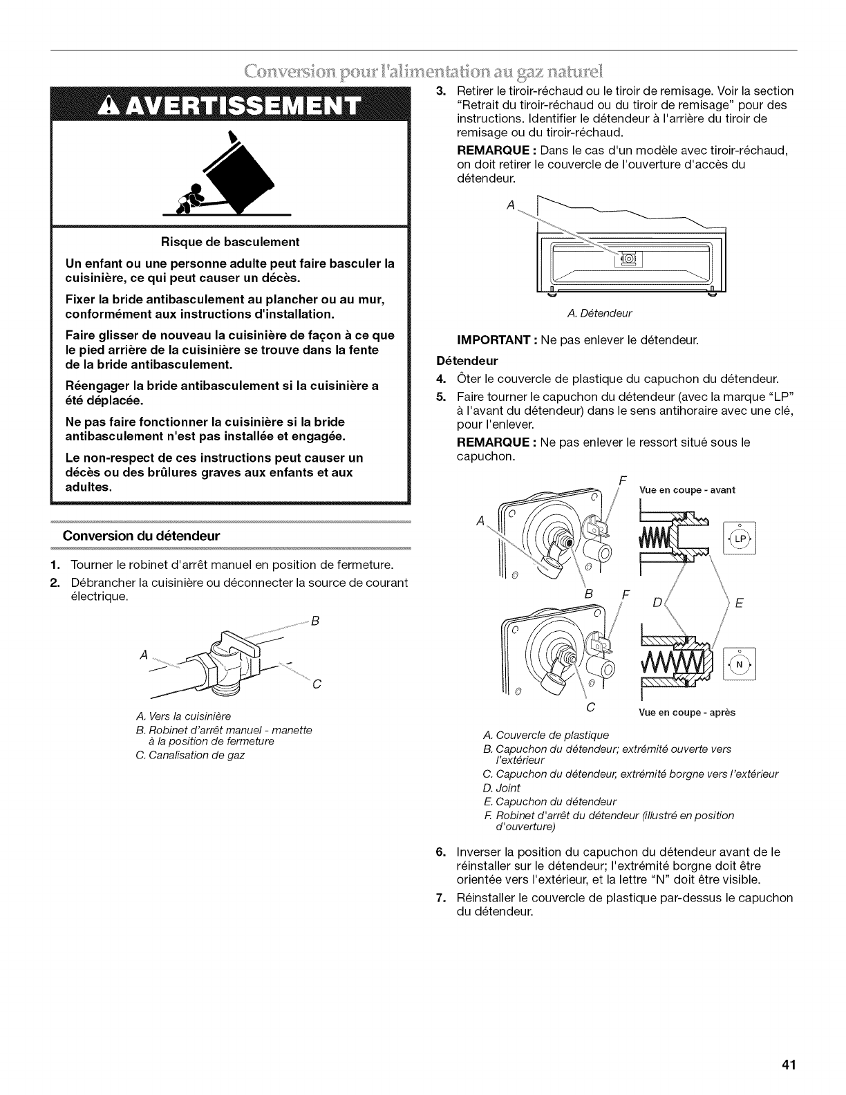 Conversion pour I'alimentation au gaz naturel .......................... 41