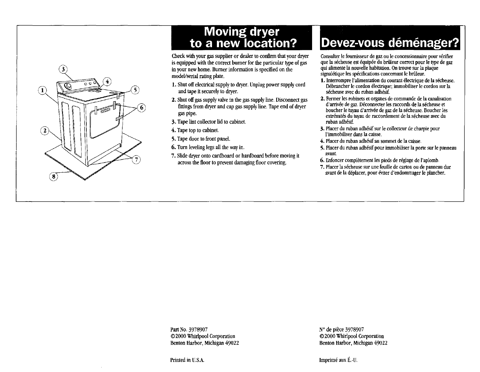 fittings from dryer and cap gas supply line. Tape end of dryer