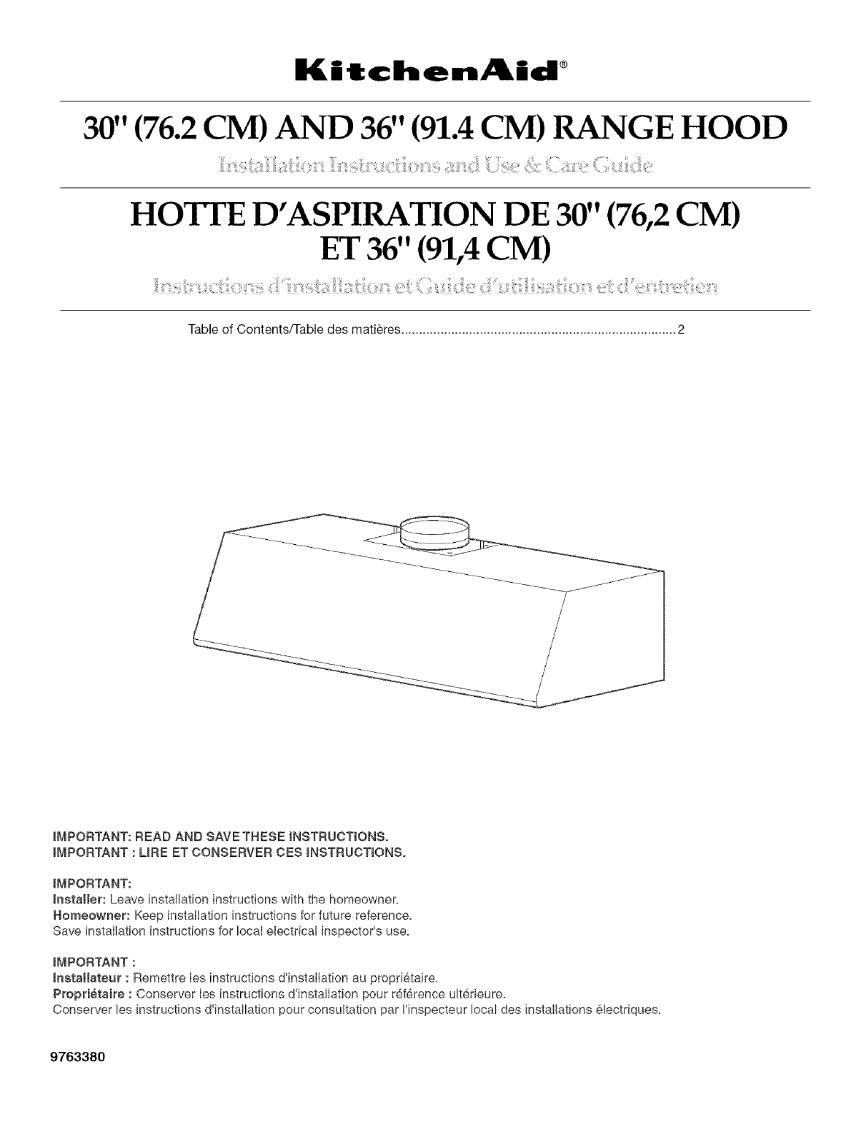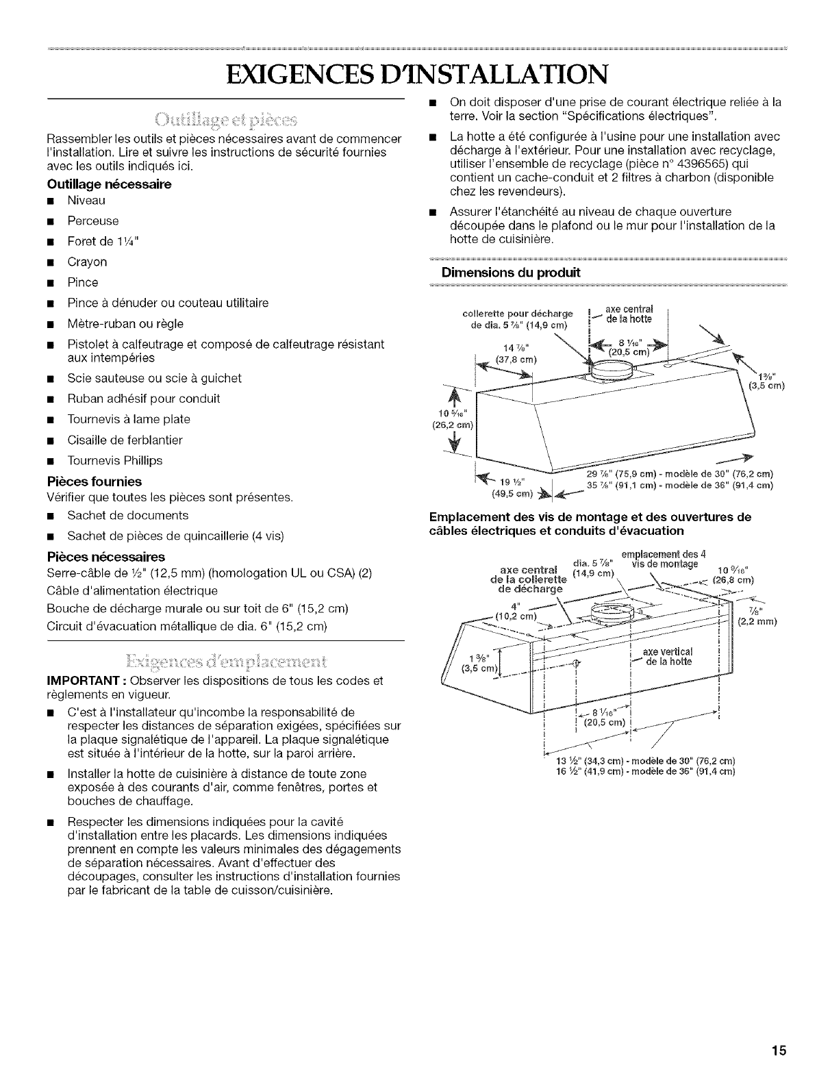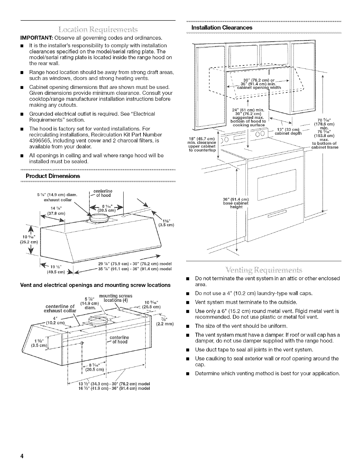 30" (76.2 CM) AND 36" (91.4 CM) RANGE HOOD