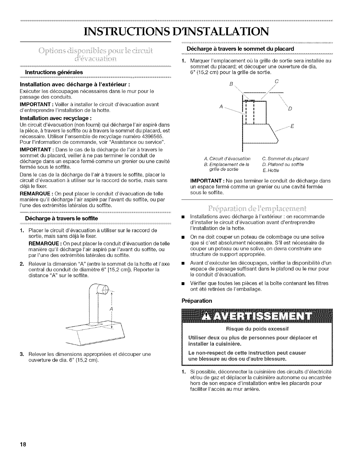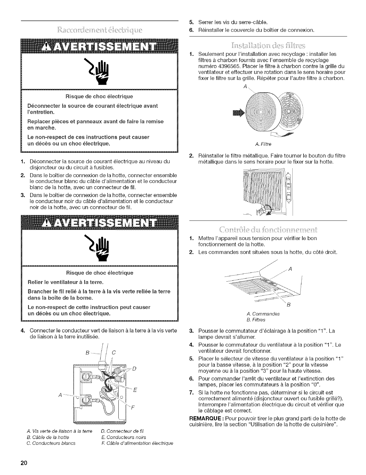 Installation de la hotte de cuisiniere ........................................... 19