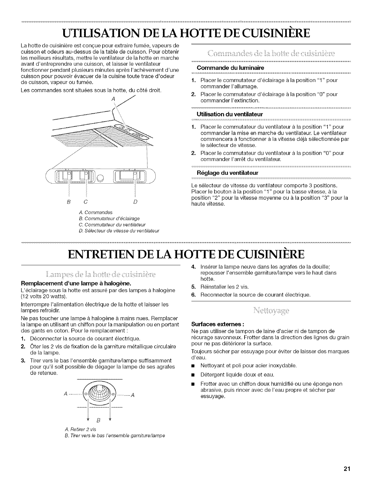 Lampes de la hotte de cuisiniere ............................................... 21