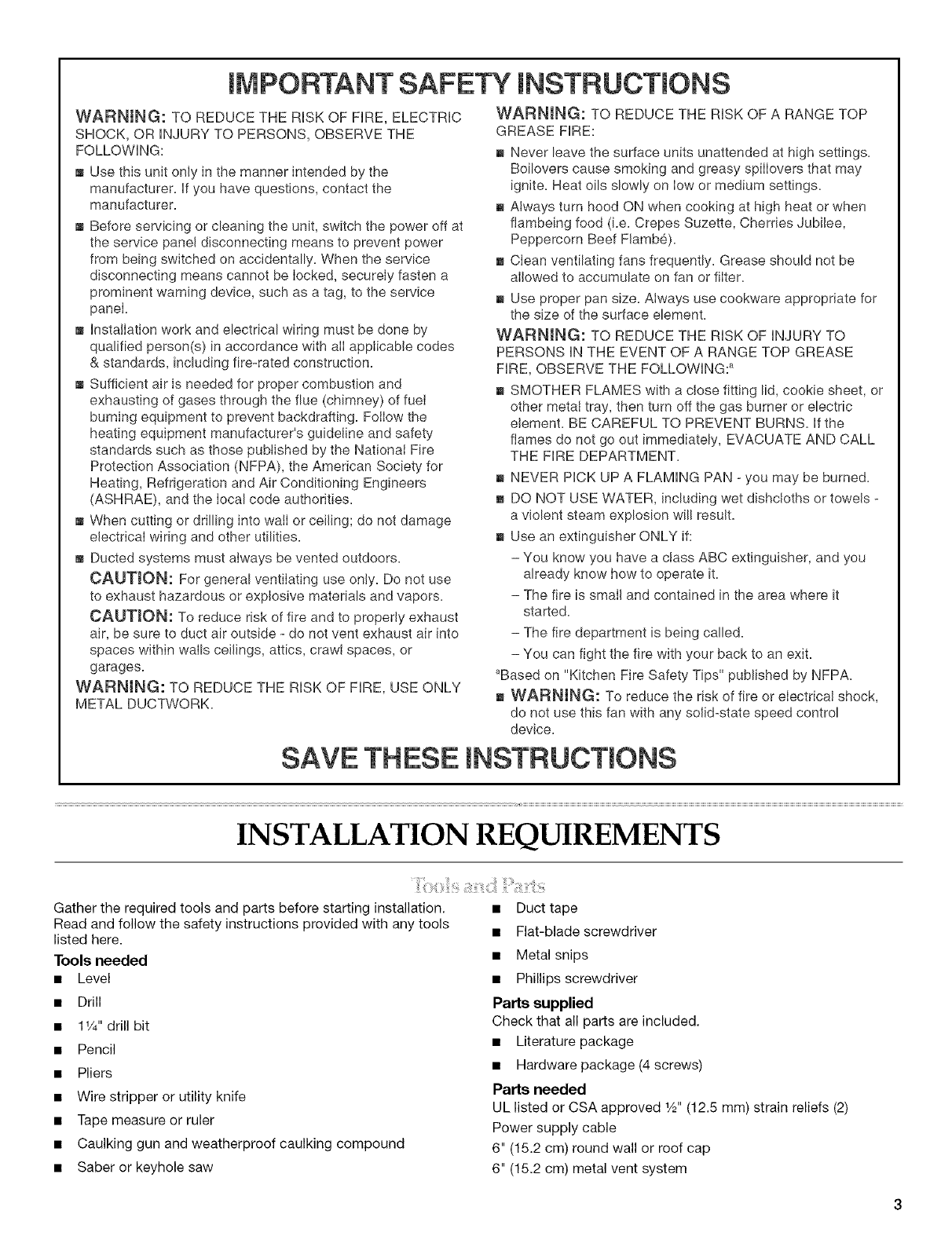 RANGE HOOD SAFETY ................................................................. 2